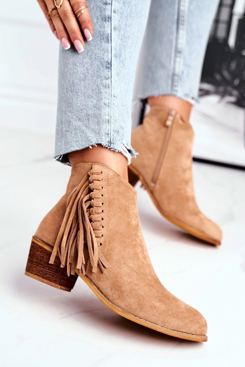 Botki Damskie Na Słupku Z Frędzlami Kowbojki Khaki Mirage