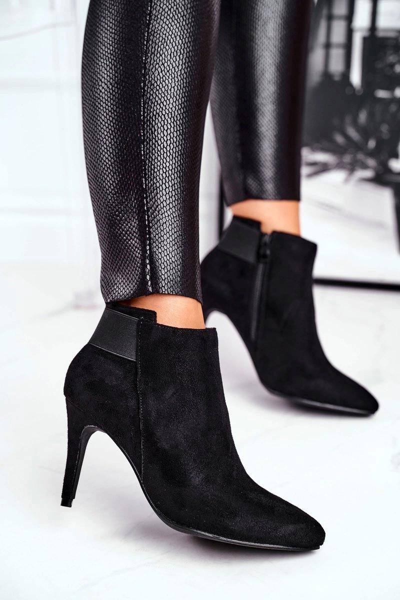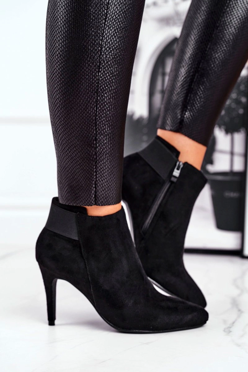 Eleganckie botki na szpilce z delikatnym ociepleniem w postaci koca obuwniczego. Botki wykonane są z eko zamszu. Koniecznie sprawdź całą naszą kolekcję damskich botków! Przy wyborze rozmiaru prosimy sugerować się tabelą rozmiarów.