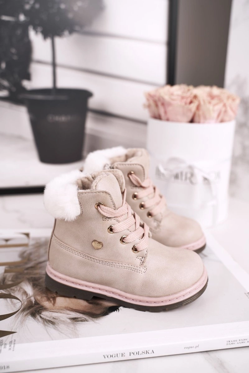Dziecięce Ocieplane Trapery Botki Beżowe Maestro