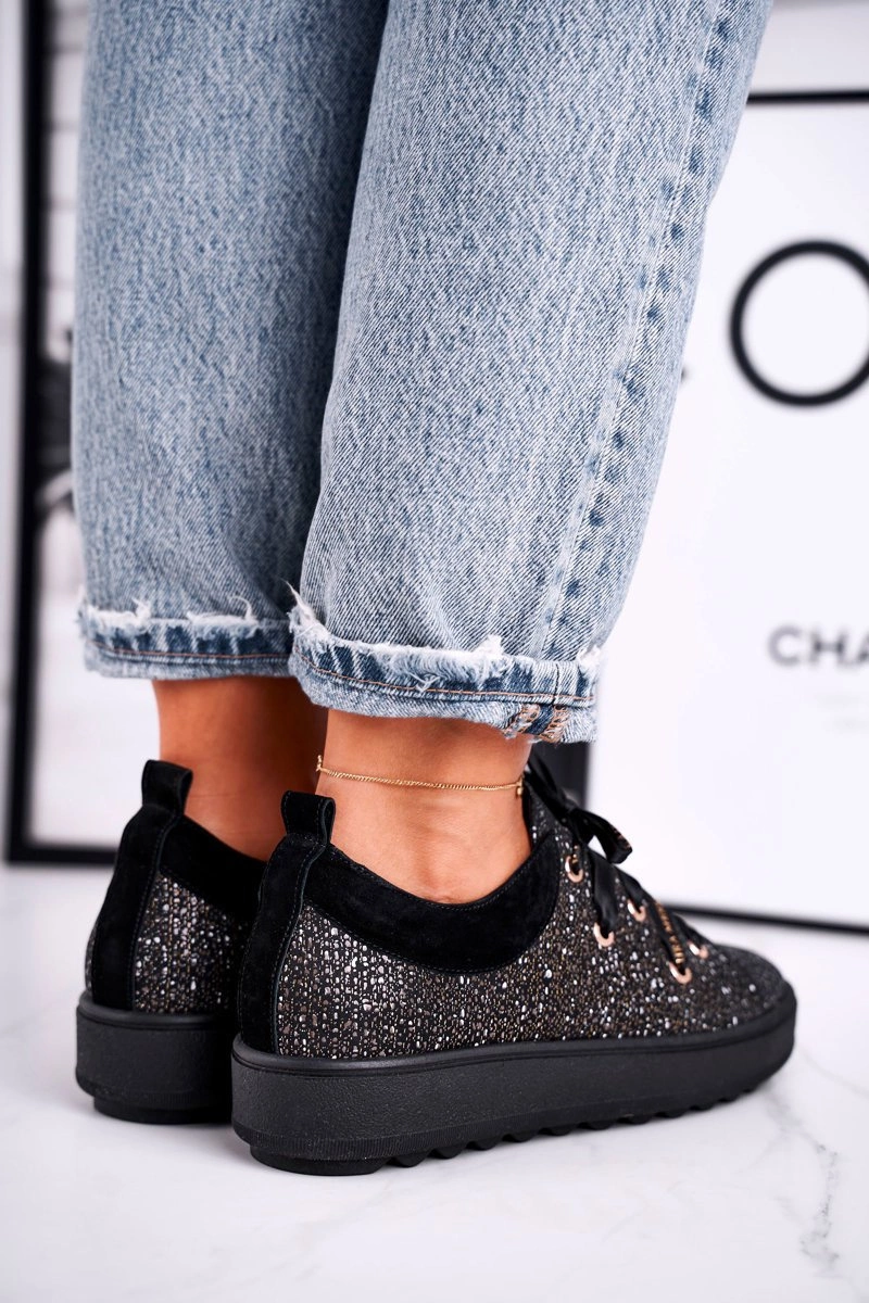 Damskie Trampki Eleganckie Skórzane Laura Messi Czarne 2045