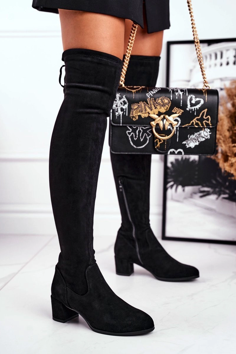 Damskie kozaki Sergio Leone lycra czarne KZ281