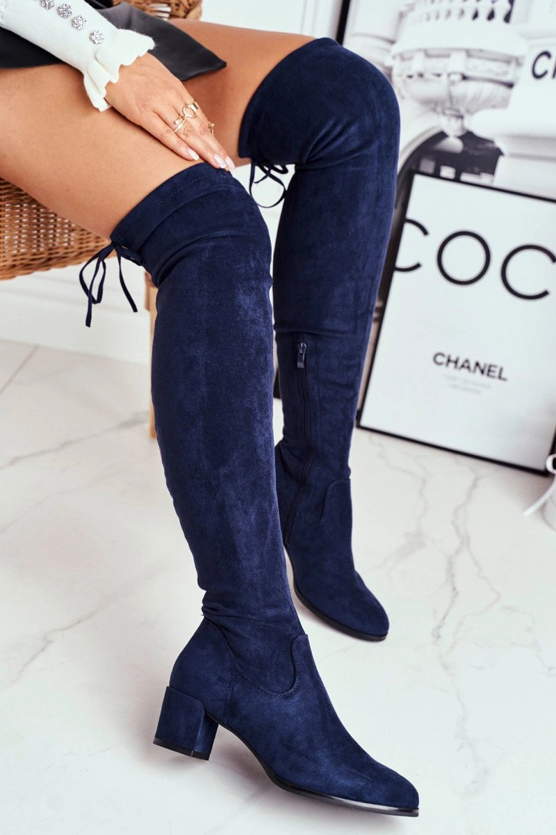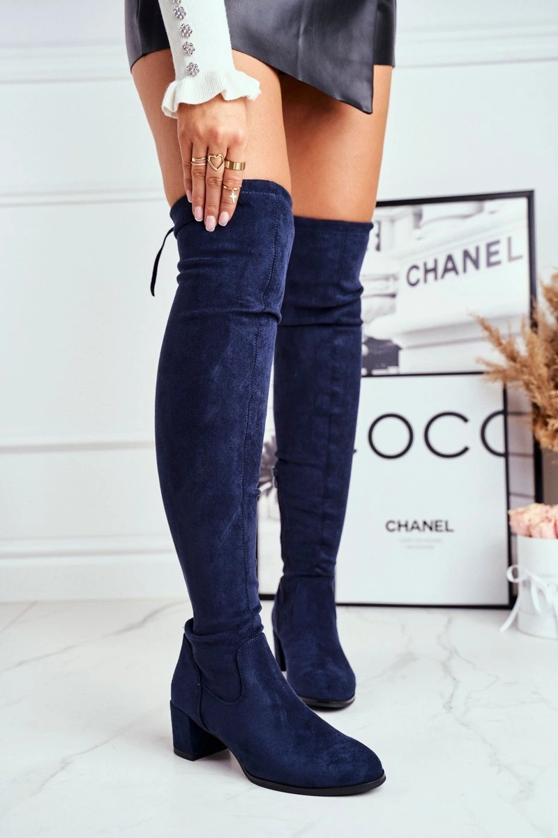 Damskie kozaki Sergio Leone lycra granatowe KZ281