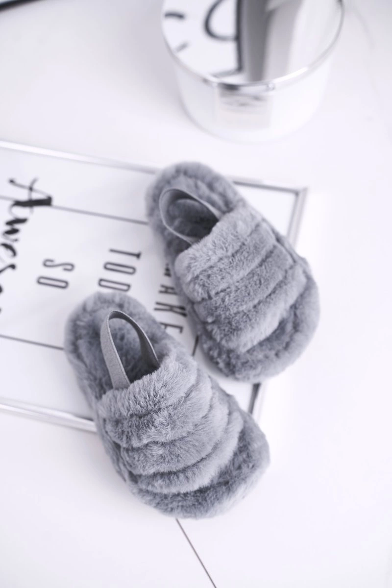 Dziecięce klapki z futerkiem i gumką szare Fluffy