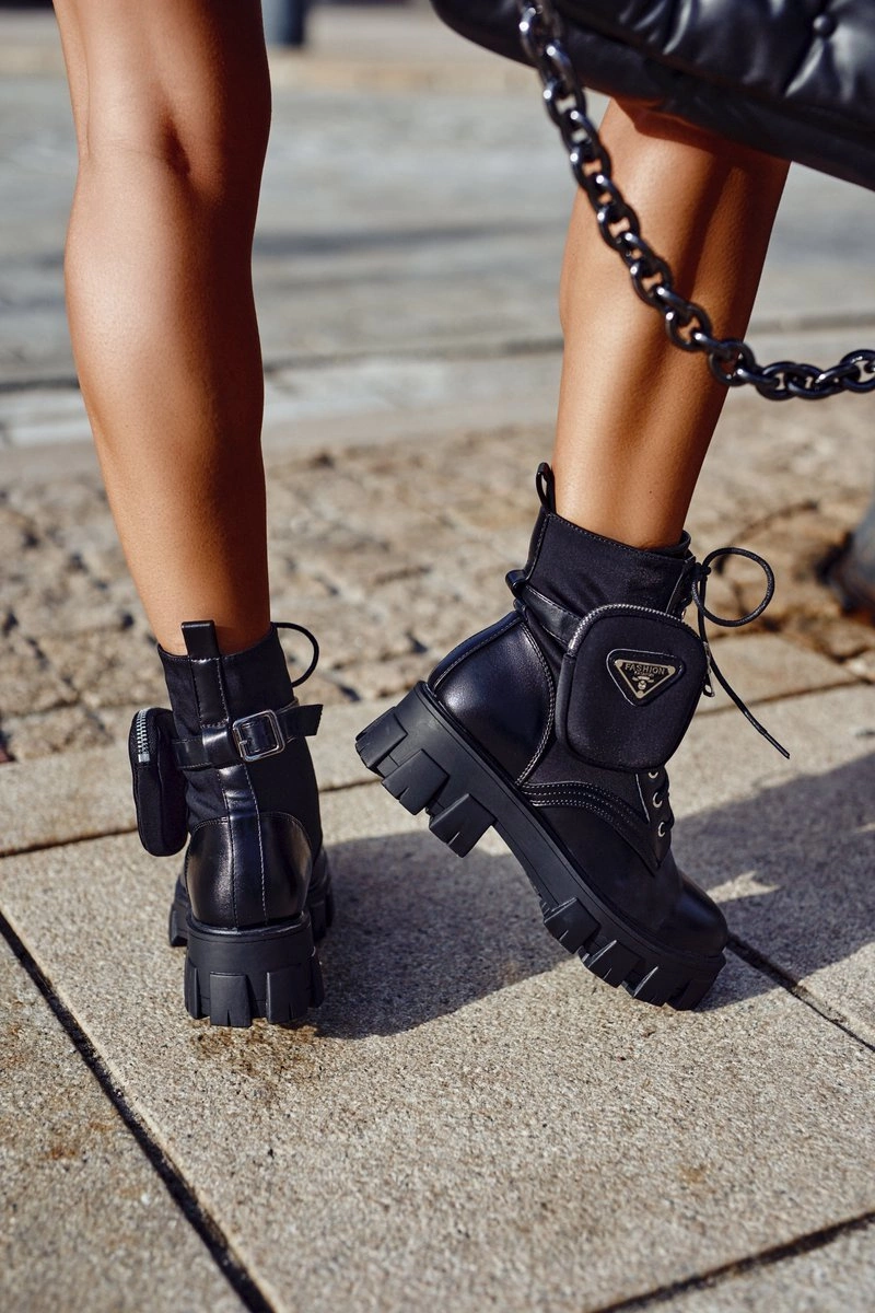 Czy może nas coś jeszcze zaskoczyć? Oczywiście! Spójrz na te przepiękne botki! Botki wykonane są ze skóry ekologicznej, wewnątrz ocieplone kocem obuwniczym. Masywna podeszwa, ozdobny pasek z torebką wokół kostki - buty z takimi zdobieniami świetnie wpiszą się np. w stylizacje glam rock lub grunge. Przy wyborze rozmiaru prosimy sugerować się tabelą rozmiarów.