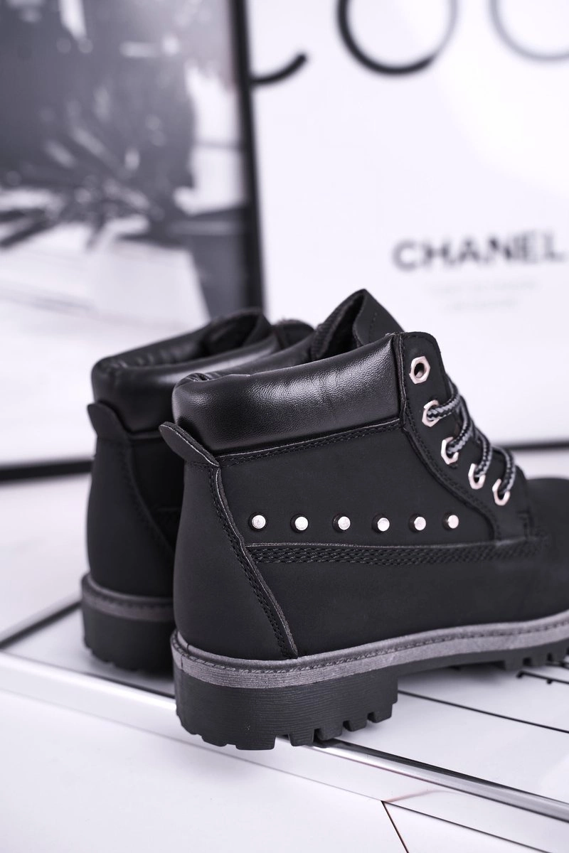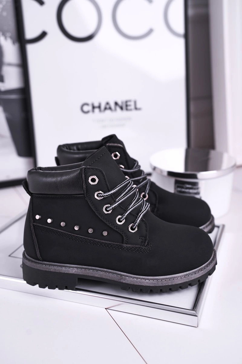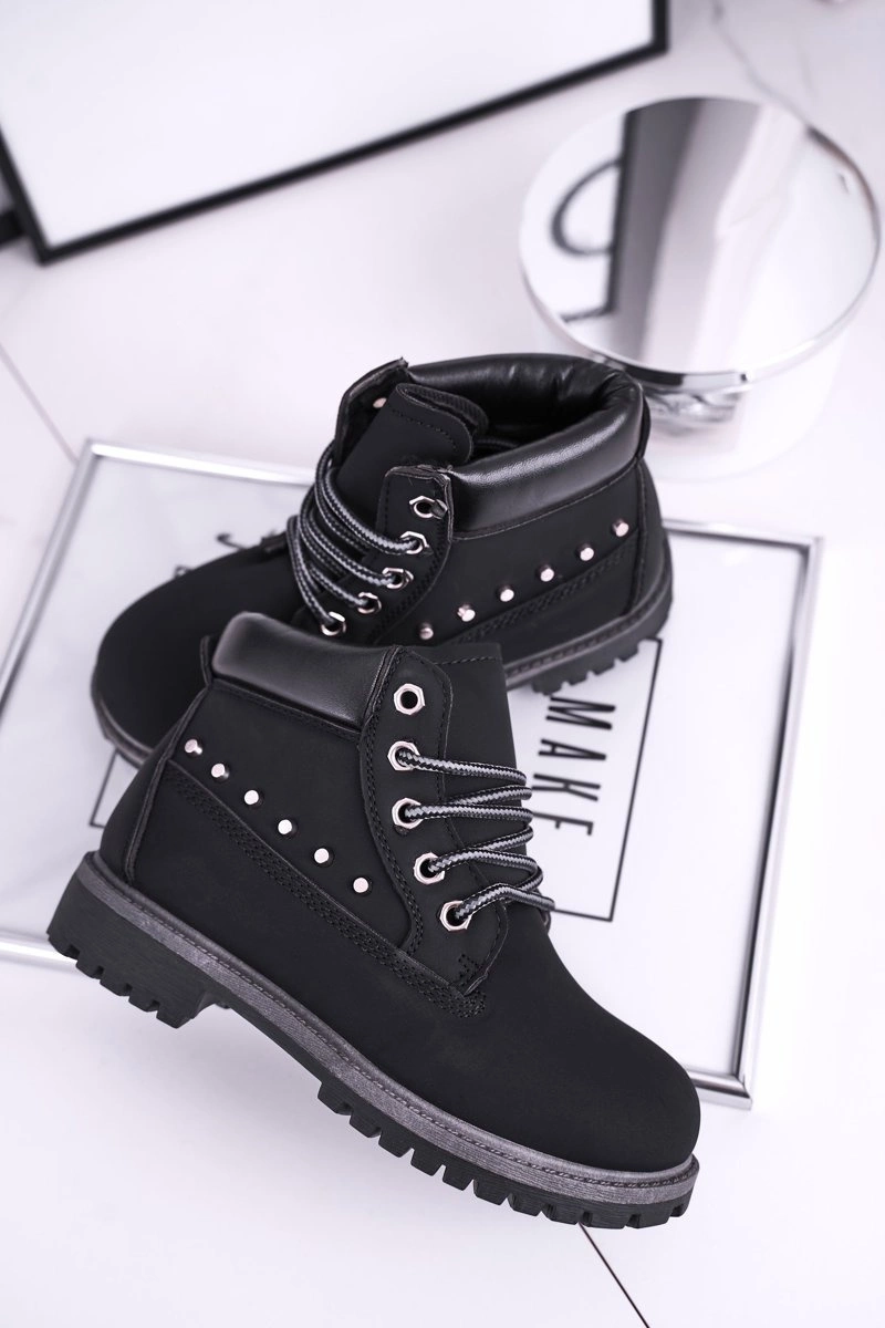 Dziecięce Ocieplane Botki z Ćwiekami Czarne Gonzo