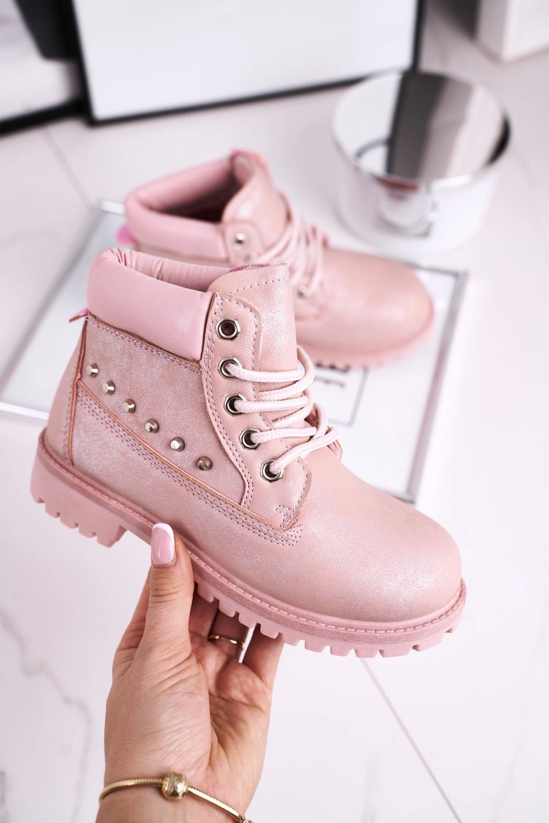 Dziecięce Ocieplane Botki z Ćwiekami Różowe Gonzo
