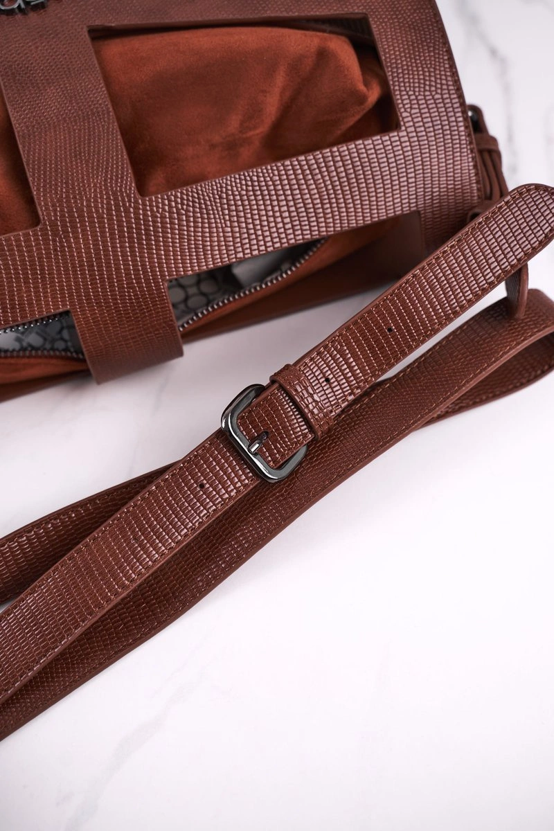 NOBO to marka, która wyróżnia się niebanalnym stylem oraz wysoką jakością wykonania produktów. Wyjątkowa listonoszka posiada jedną komorę oraz trzy wewnętrzne kieszenie na telefon i drobiazgi. Wnętrze torebki jest beżowe w logo NOBO. Listonoszka posiada regulowany pasek. Torebka wykonana jest ze skóry ekologicznej z drobnym motywem zwierzęcym.