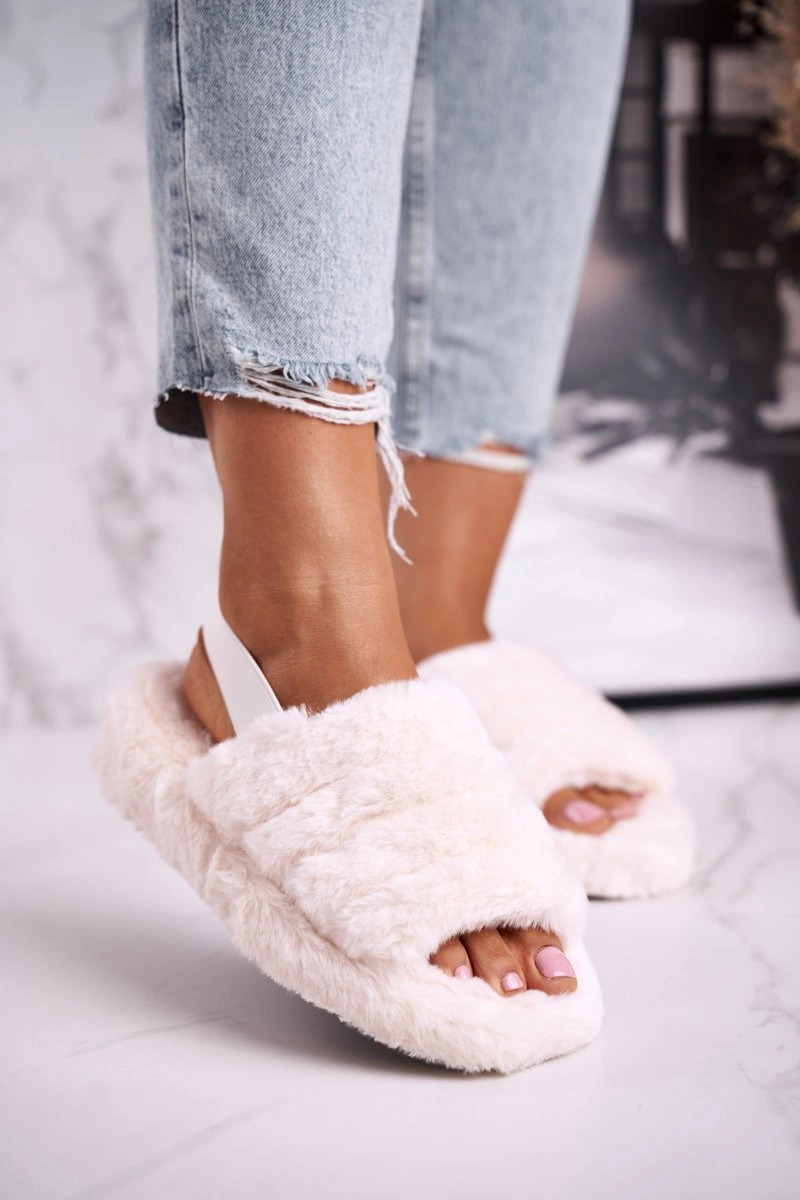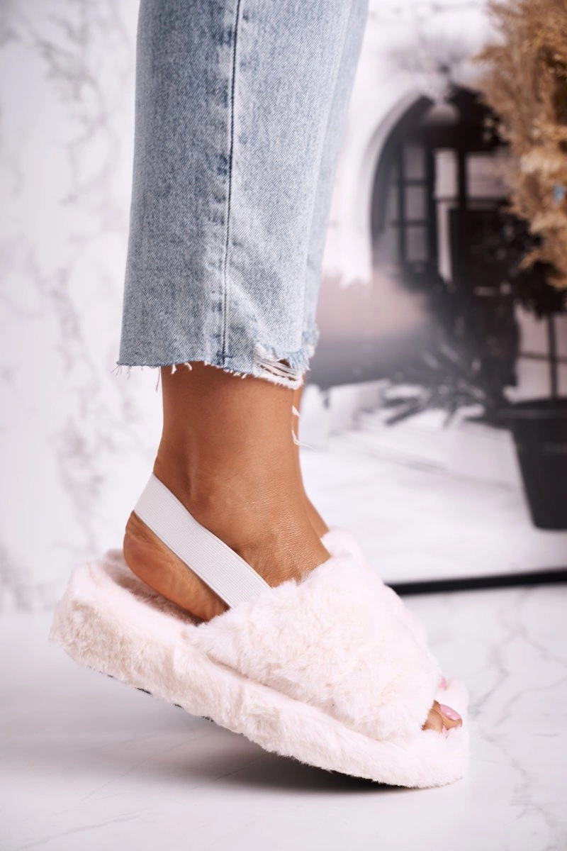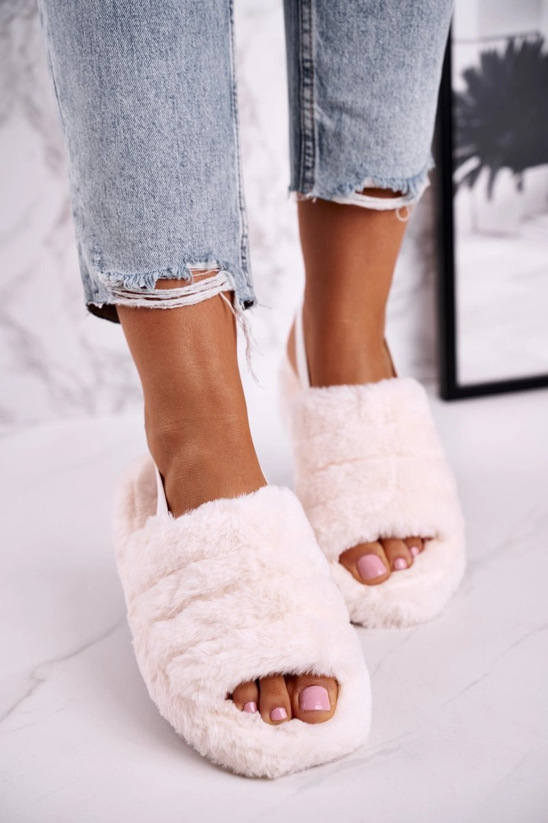 Papcie Damskie na Platformie Futrzane Beżowe Snowflake