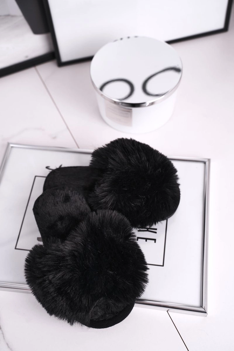 Dziecięce Papcie Klapki z Futerkiem Czarne Snow Ball