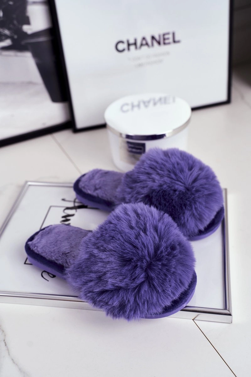 Dziecięce Papcie Klapki z Futerkiem Fioletowe Snow Ball