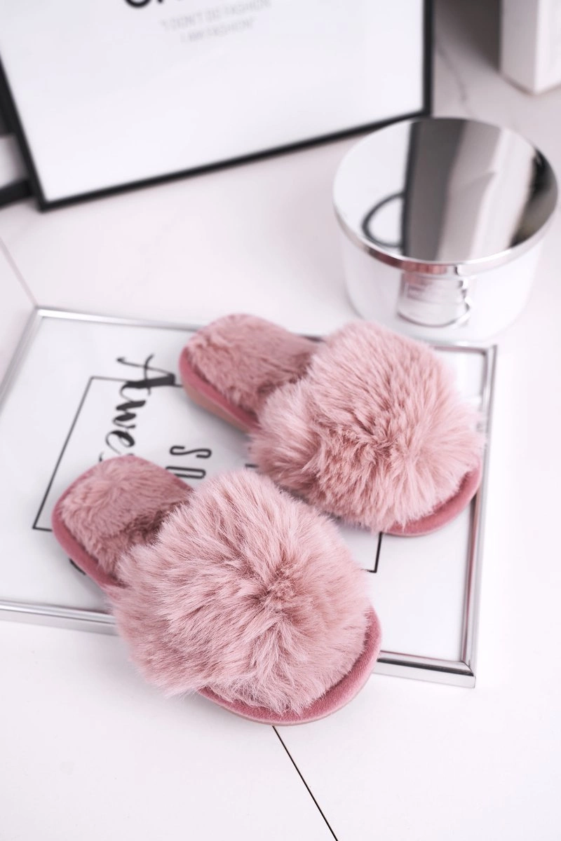 Dziecięce Papcie Klapki z Futerkiem Pudrowy Róż Snow Ball