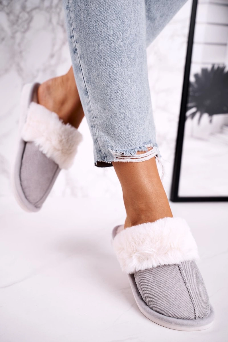 Damskie Papcie Klapki z Futerkiem Szare Homely