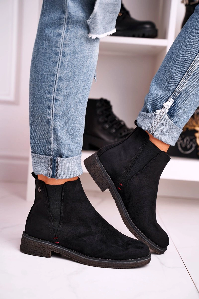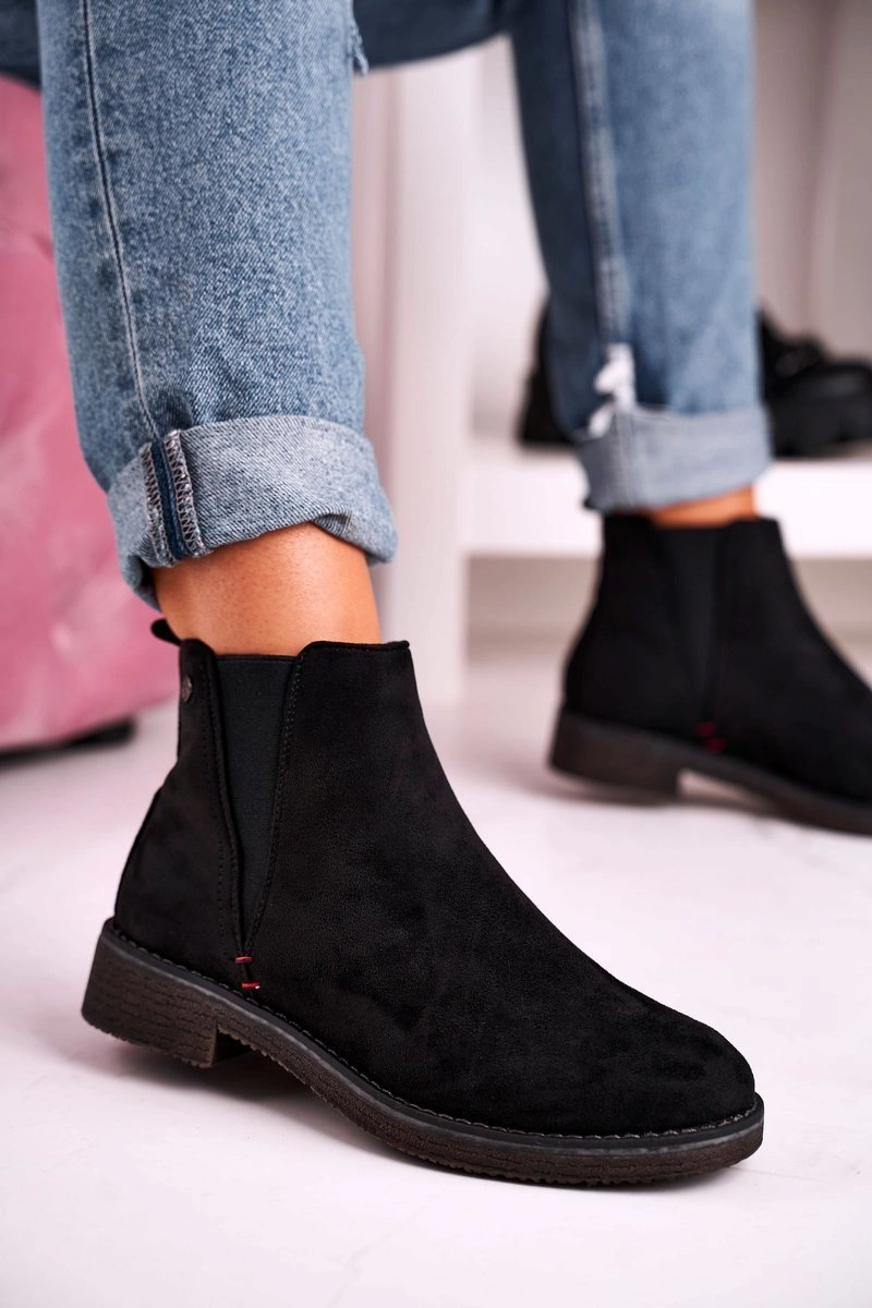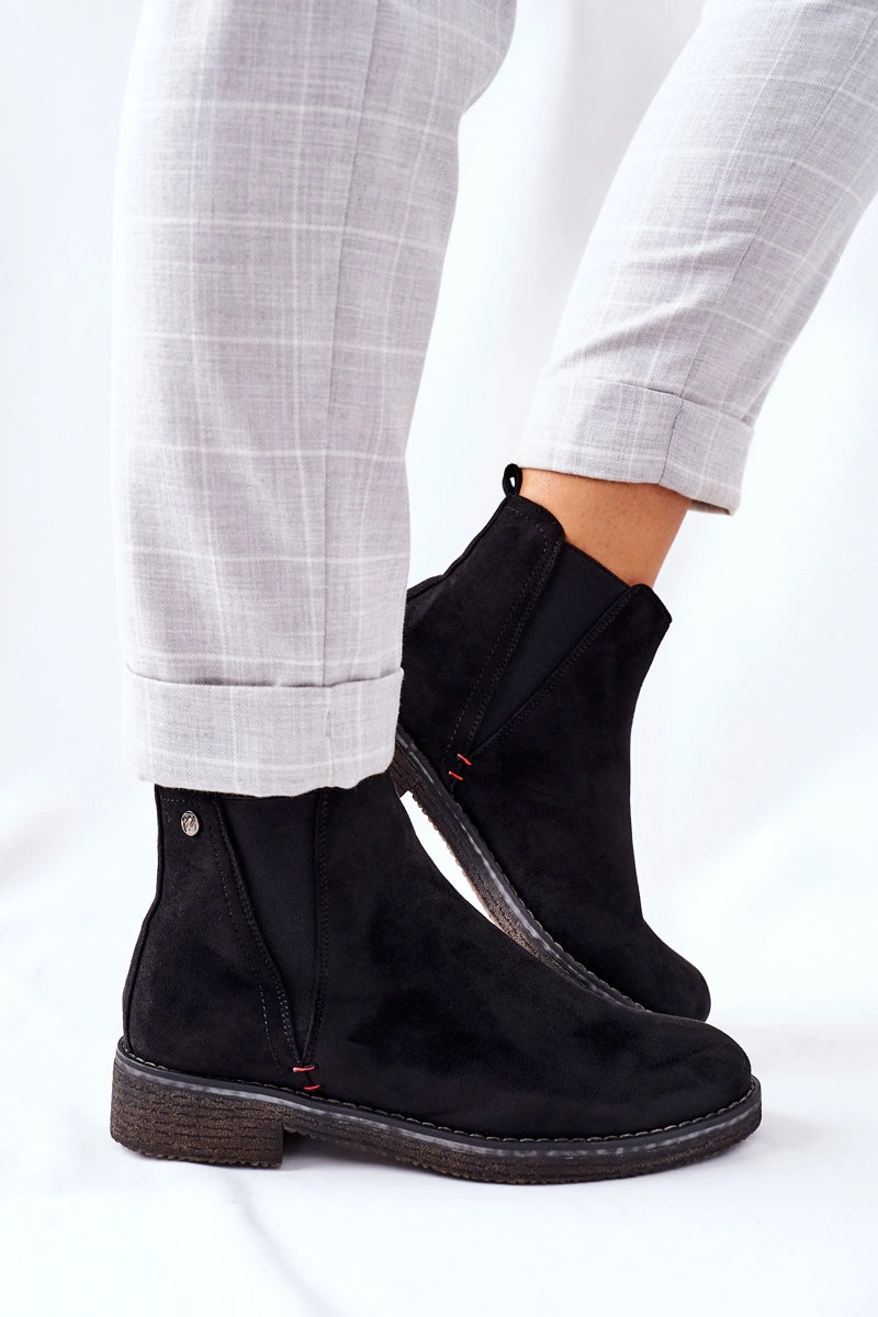 Klasyczne Damskie Botki Sztyblety Zamszowe Czarne Heather