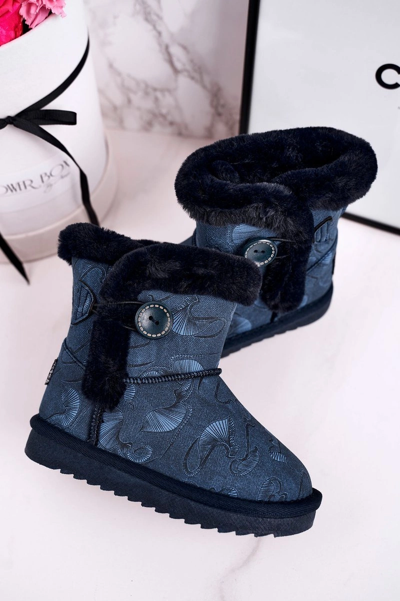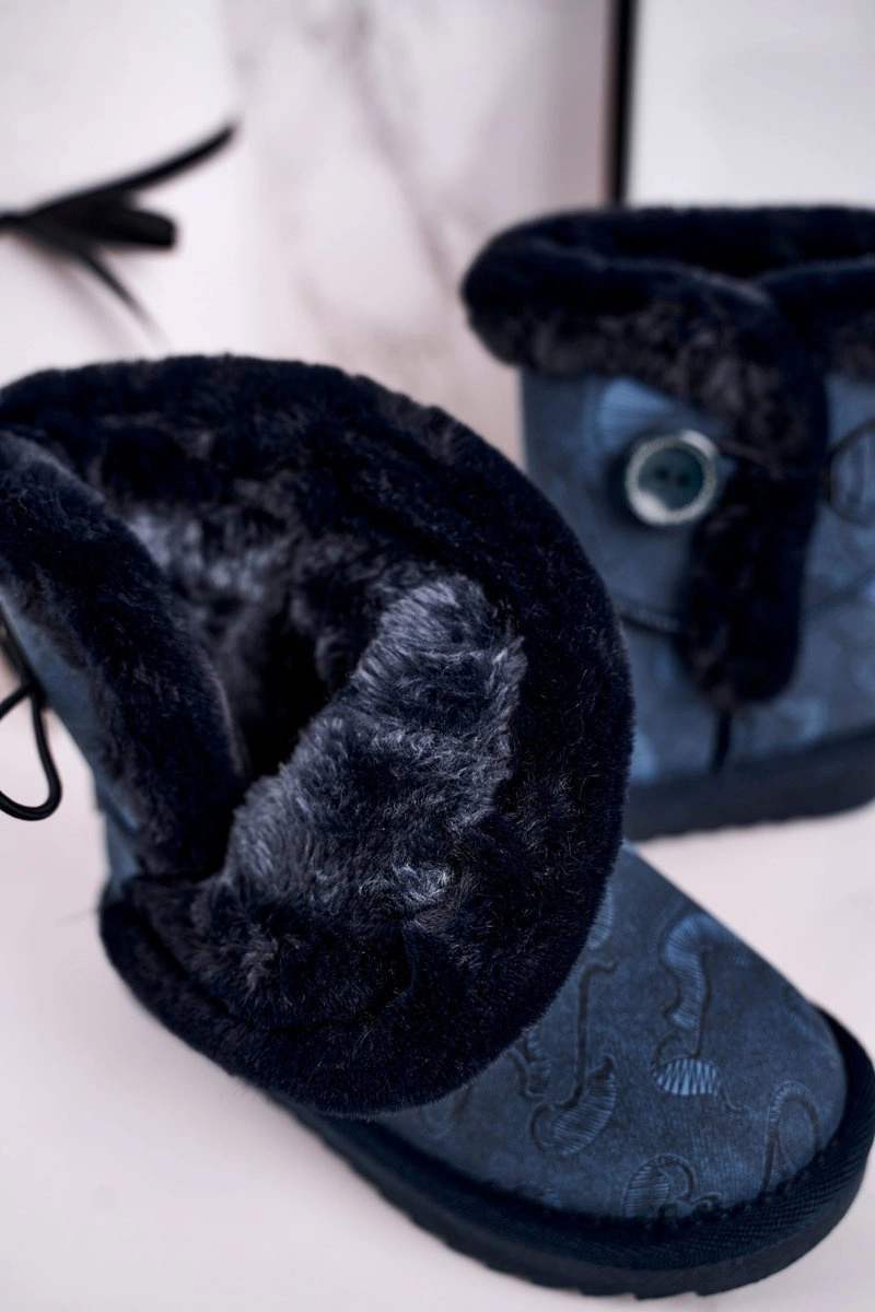 Dziecięce Botki Śniegowce Z Futerkiem I Guzikiem Granatowe Kawai