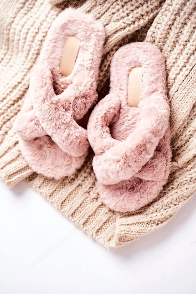 Damskie Klapki Papcie Futrzane Jasny Brąz Cozy Time