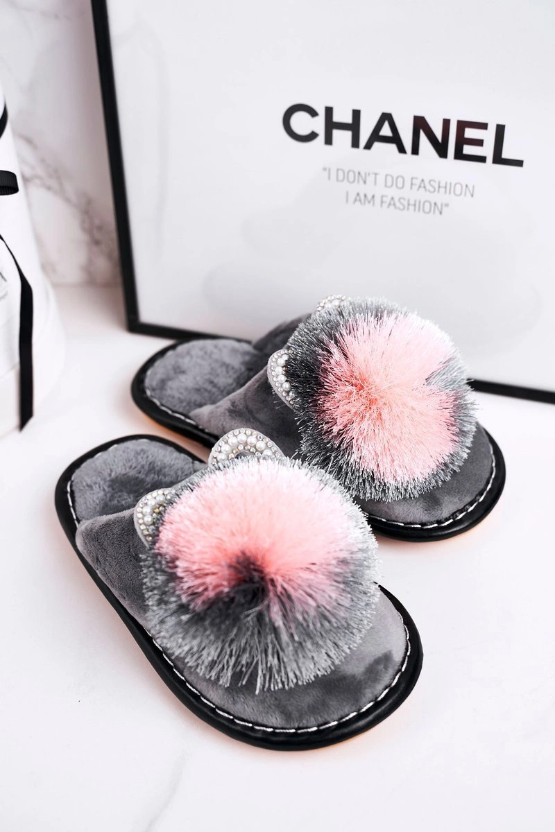 Dziecięce Klapki Papcie Z Pomponem Szare Cinderella