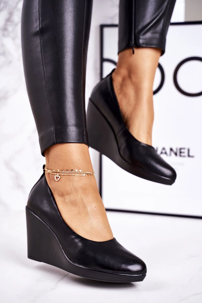 Damskie Klasyczne Czółenka Na Koturnie Czarne Ivonne