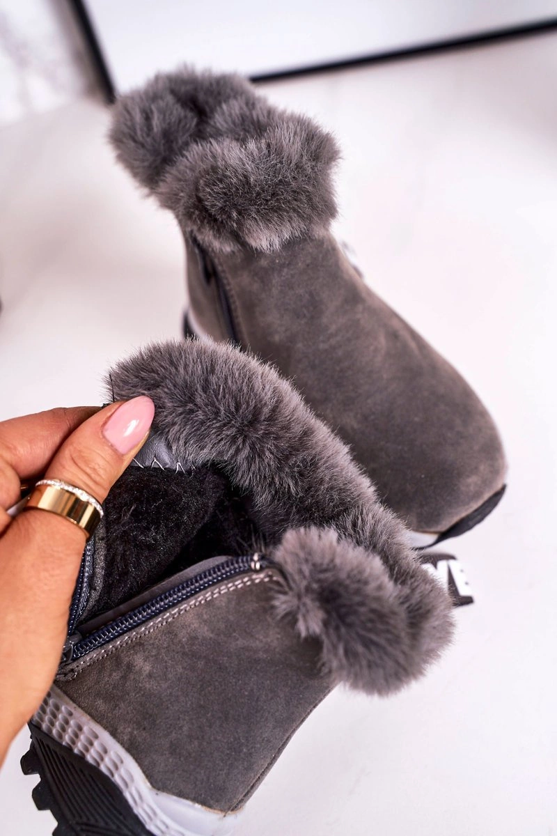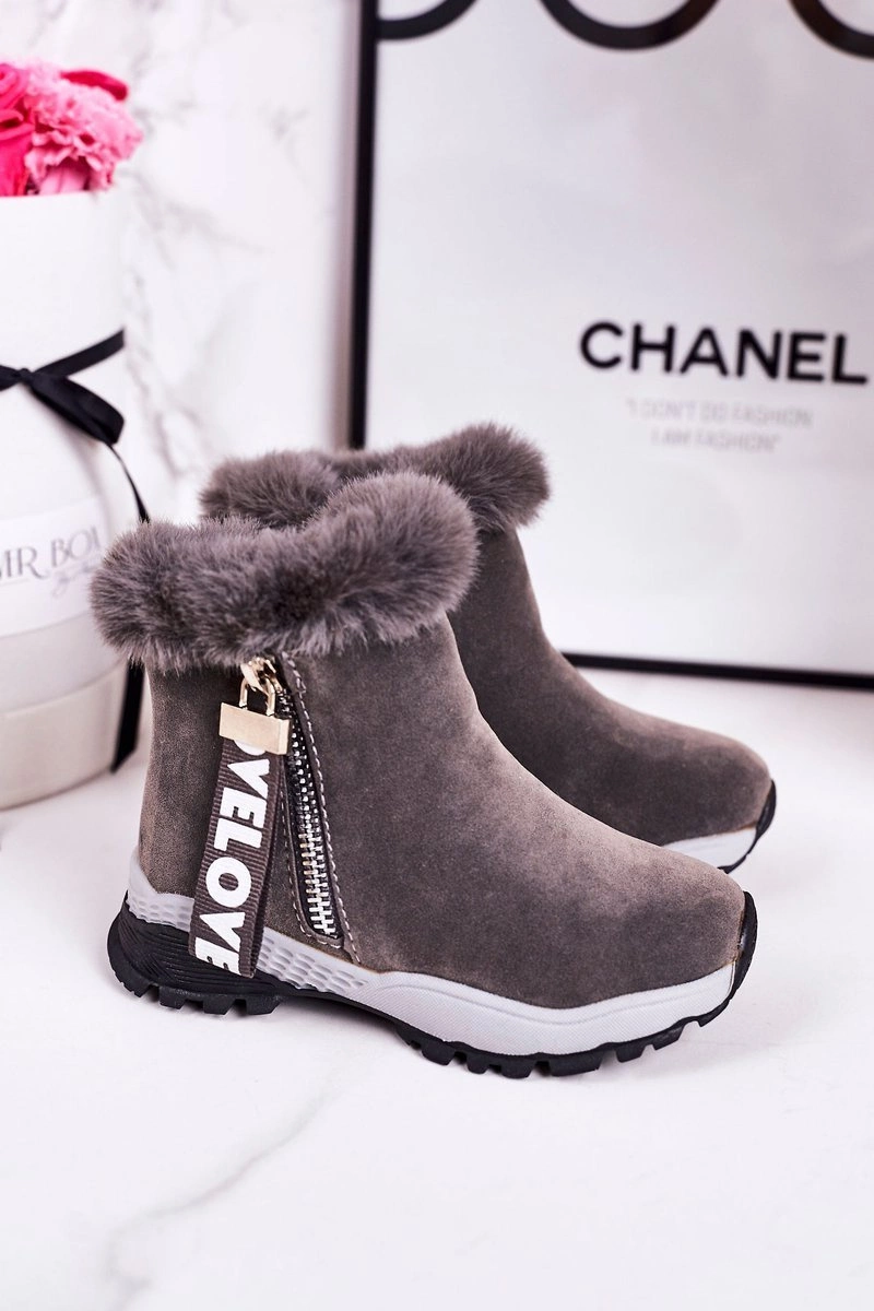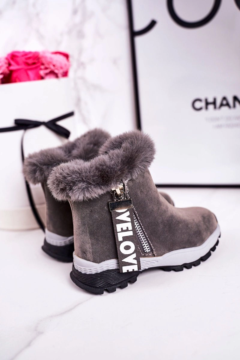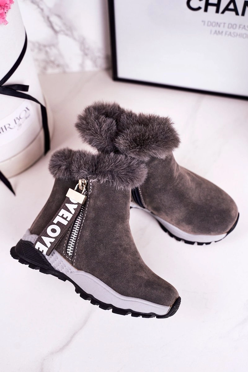 Dziecięce Ocieplane Botki Śniegowce Z Futerkiem Szare Love-Love