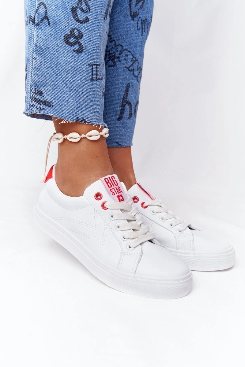 Damskie tenisówki polskiej marki BIG STAR. Klasyczna forma pasuje do wielu stylizacji. Buty dobrze dopasowują się do kształtu stopy, posiadają miękką, materiałową wkładkę. Wykonane są z wysokiej jakości eko skóry. Koniecznie sprawdź całą naszą kolekcję butów BIG STAR. Przy wyborze rozmiaru prosimy sugerować się tabelą rozmiarów.