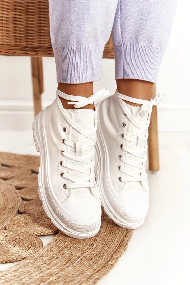 Damskie Wysokie Trampki Na Dużej Podeszwie Białe Trissy