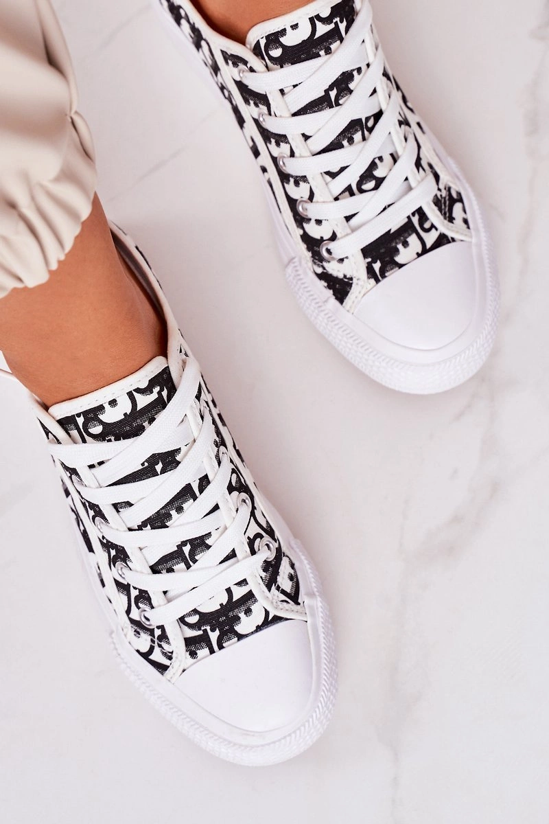 Damskie Logowane Trampki Biało-Czarne Daphne