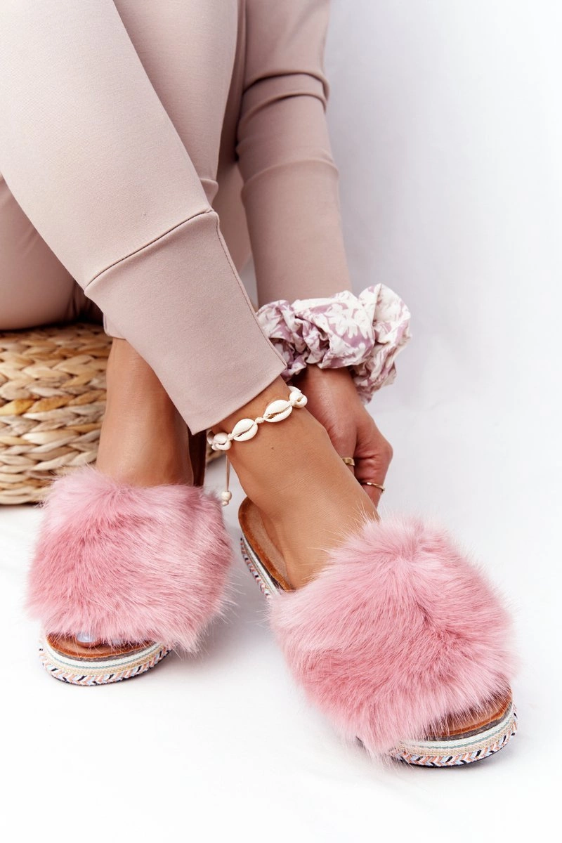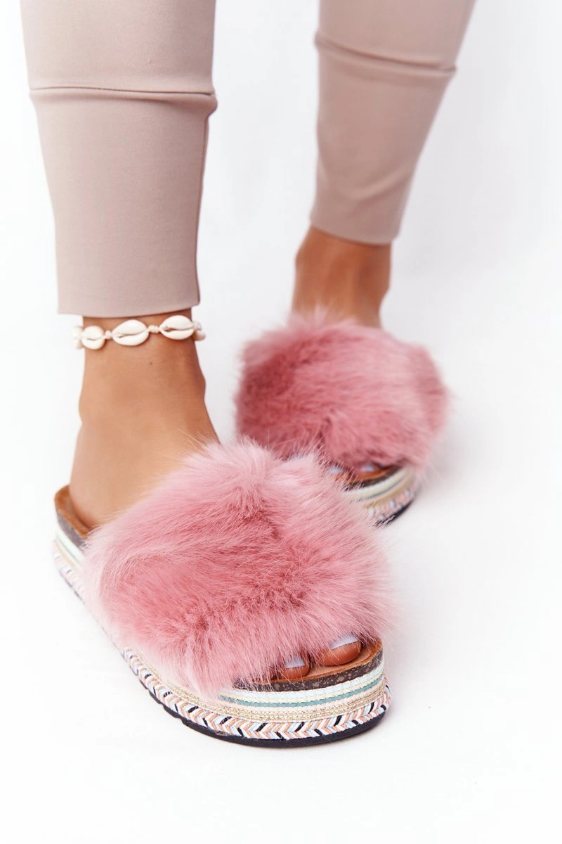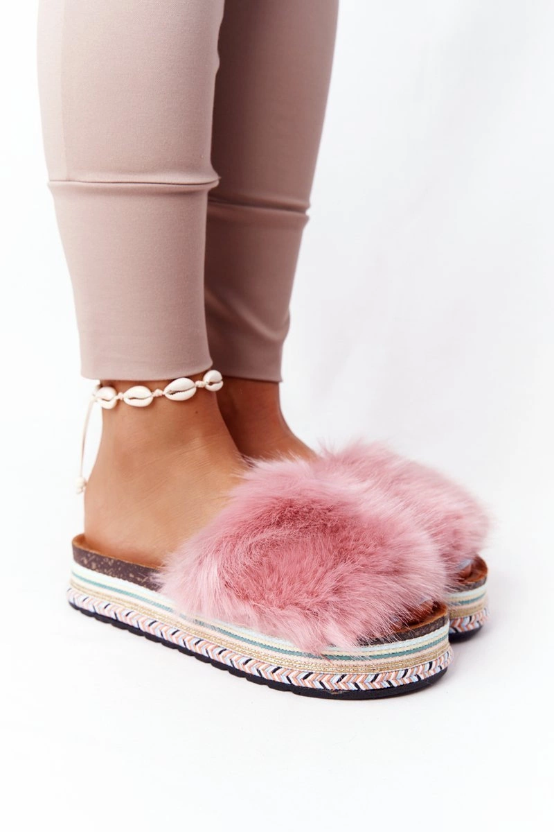 Klapki Na Platformie z Futerkiem Różowe Adventure