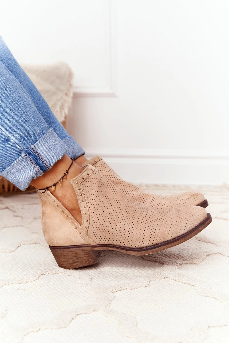Ażurowe Botki Z Wycięciami Beżowe Clever