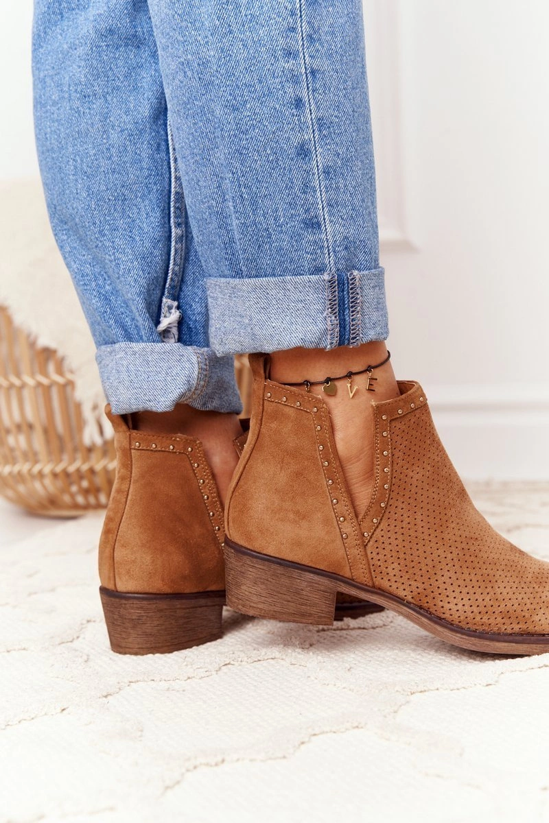 Piękne botki damskie z wycięciami. Botki wykonane są z eko zamszu. Miękka wkładka z eko skóry oraz wygodny obcas zadbają o Twój komfort. Botki dopełnią wiele wiosennych stylizacji! Koniecznie sprawdź całą naszą kolekcję damskich botków! Przy wyborze rozmiaru prosimy sugerować się tabelą rozmiarów.
