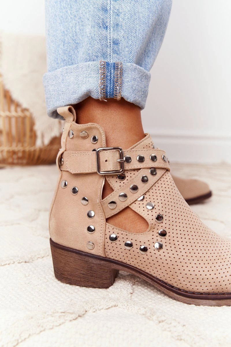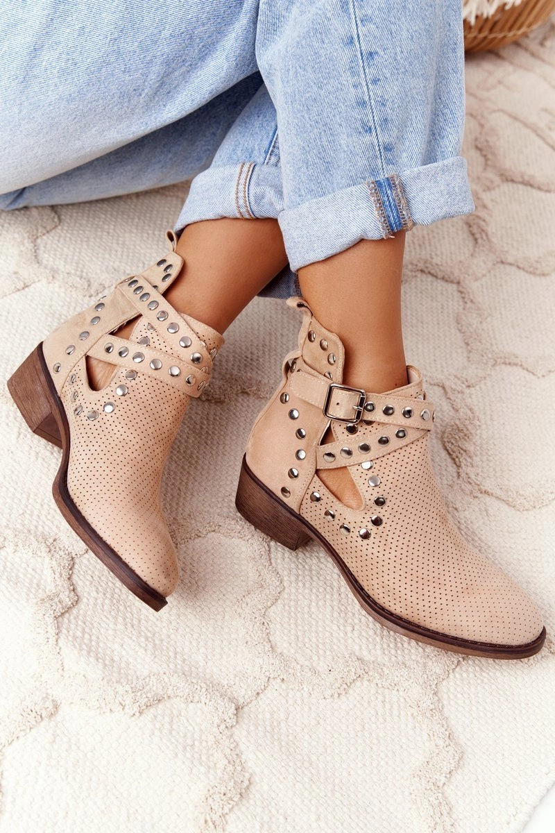 Ażurowe Botki Z Dżetami Beżowe Dakota