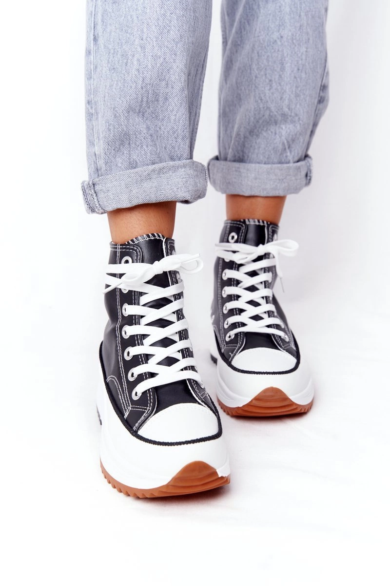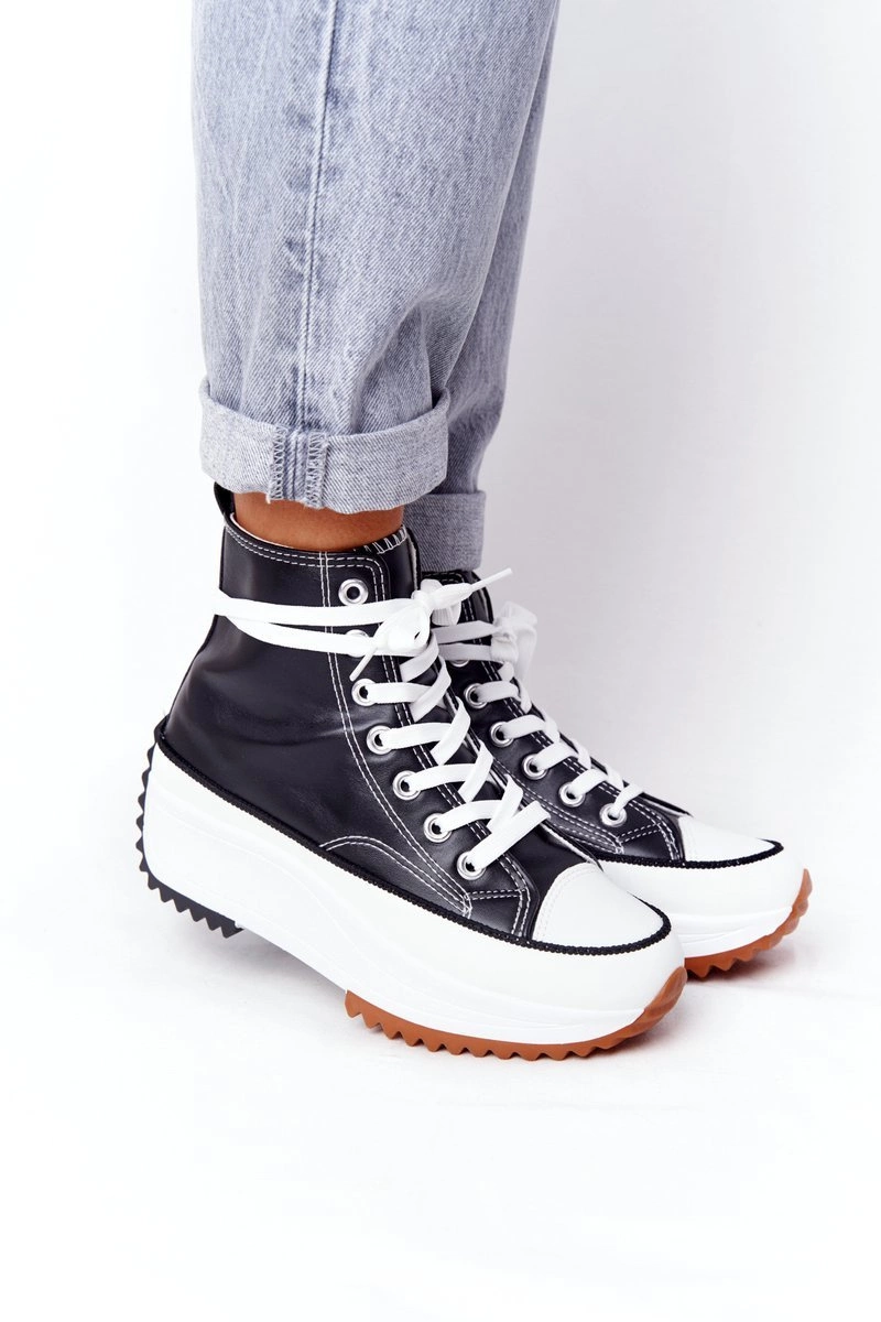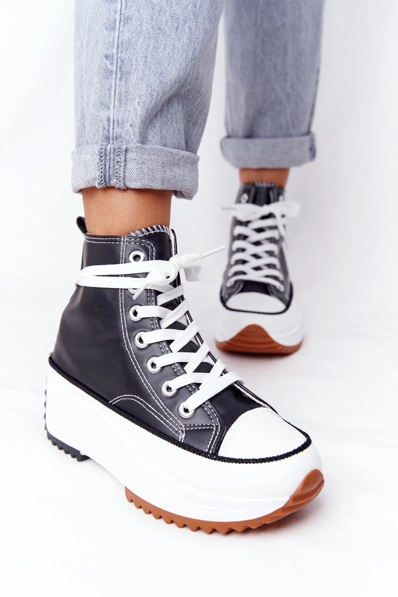 Damskie trampki na platformie wykonane z eko skóry. Kultowe już trampki pasują do wielu stylizacji. Buty dobrze dopasowują się do kształtu stopy, posiadają miękką materiałową wkładkę. Koniecznie sprawdź całą naszą kolekcję trampek! Przy wyborze rozmiaru prosimy sugerować się tabelą rozmiarów.