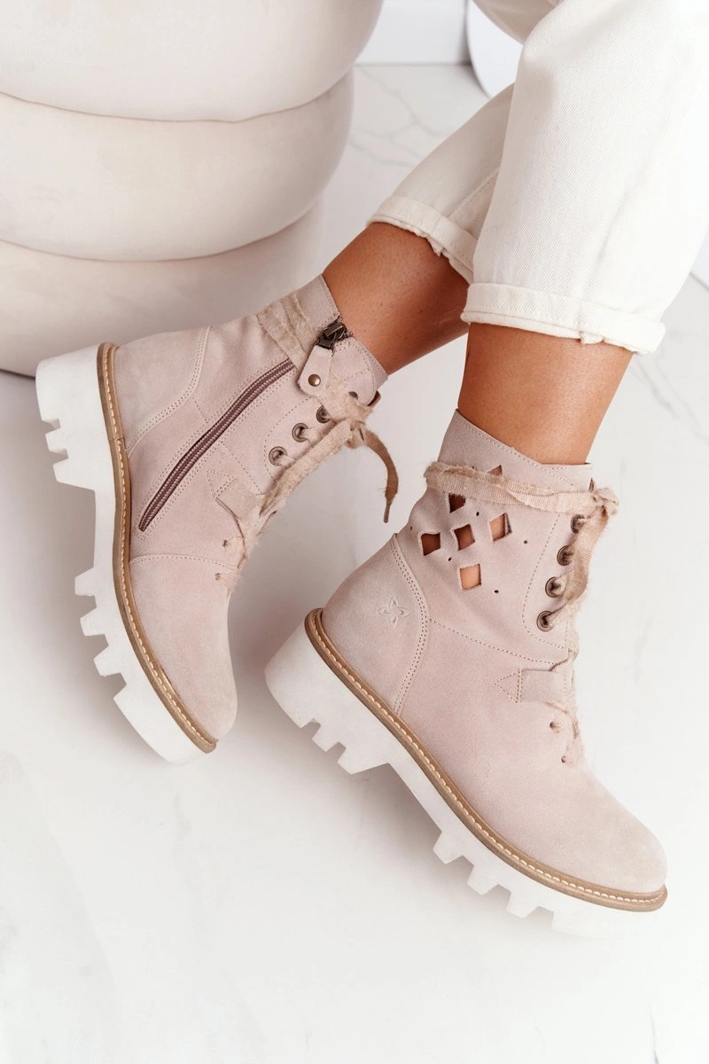 Zamszowe Ażurowe Botki Maciejka Beżowe 05033-04