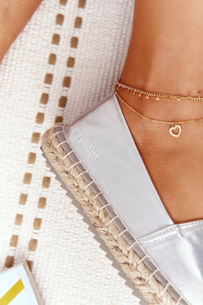 Skórzane Espadryle Na Plecionej Podeszwie Big Star HH274504 Srebrne