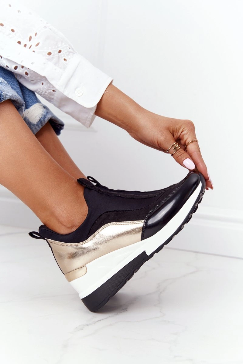 Sneakersy Na Koturnie Czarno-Złote City Beat