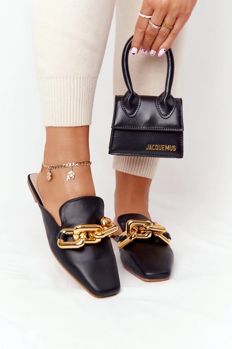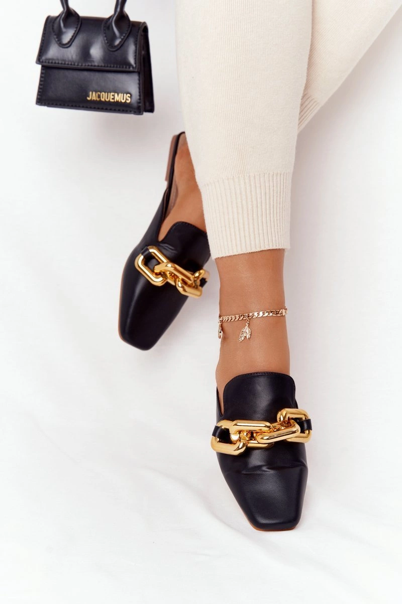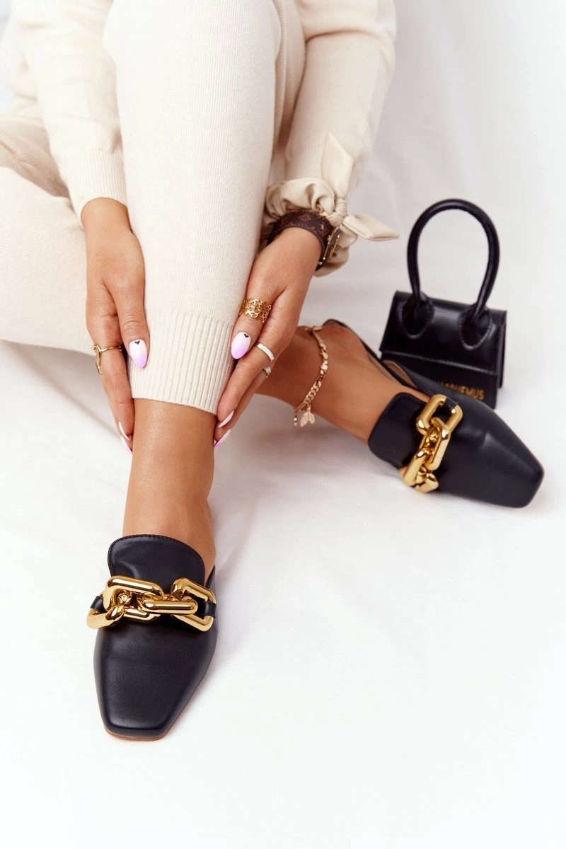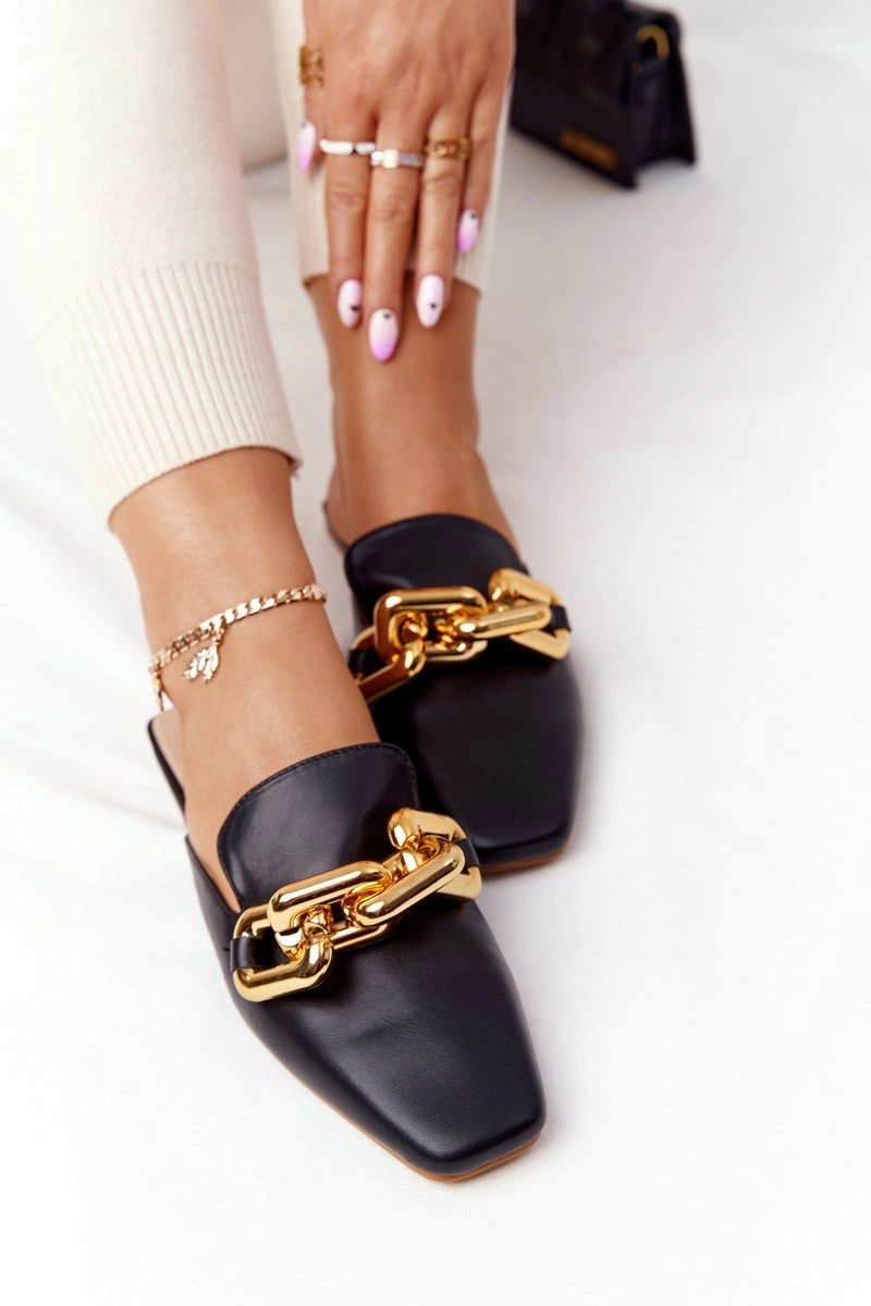 Klapki Z Cholewką I Łańcuchem Czarne Call On Me