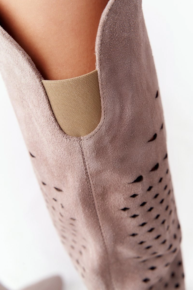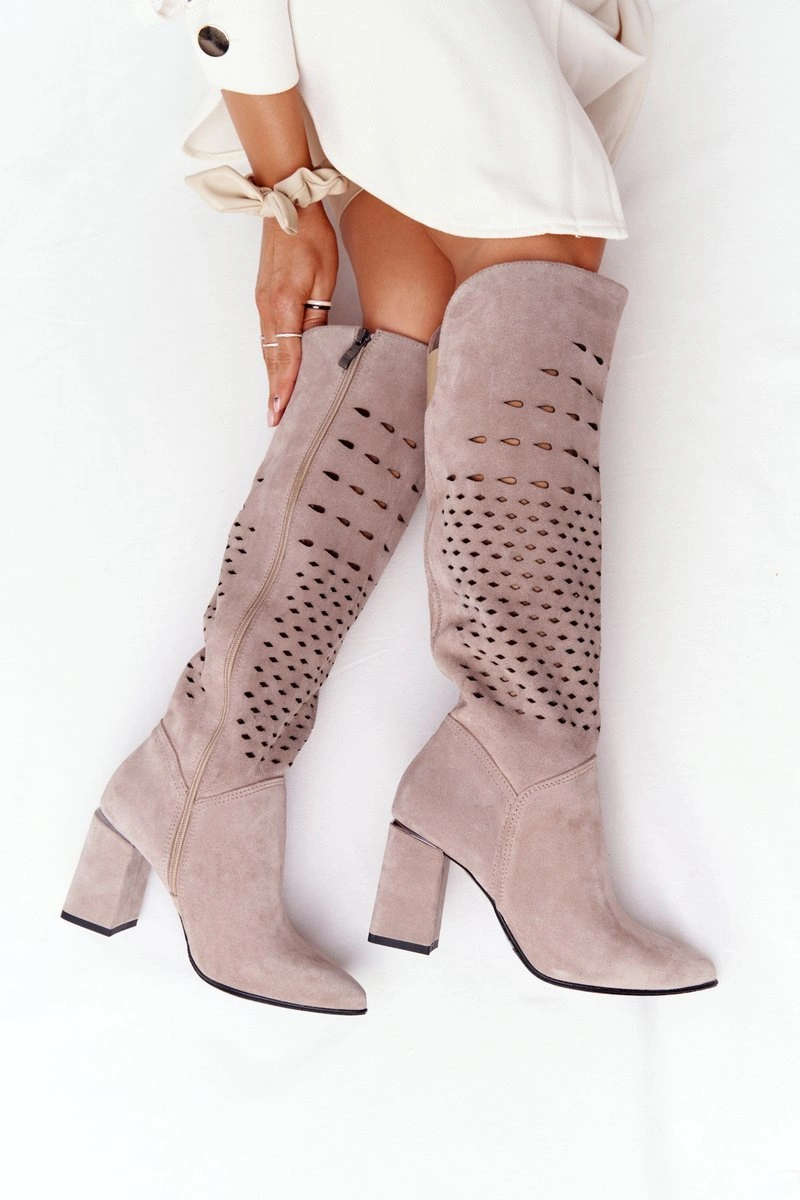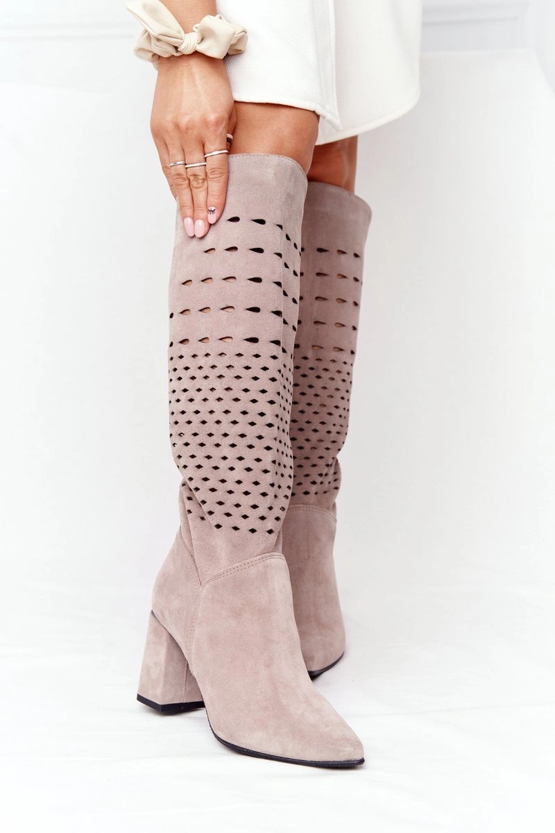 Wiosenne Ażurowe Kozaki Lewski Shoes 2847/B Beżowe