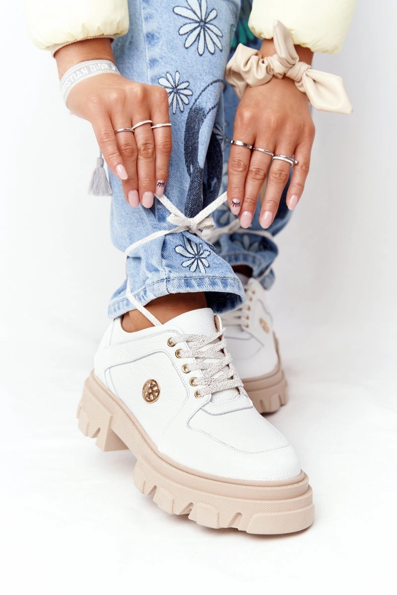 Skórzane Półbuty Oxfordy Lewski Shoes 3011-0 Białe