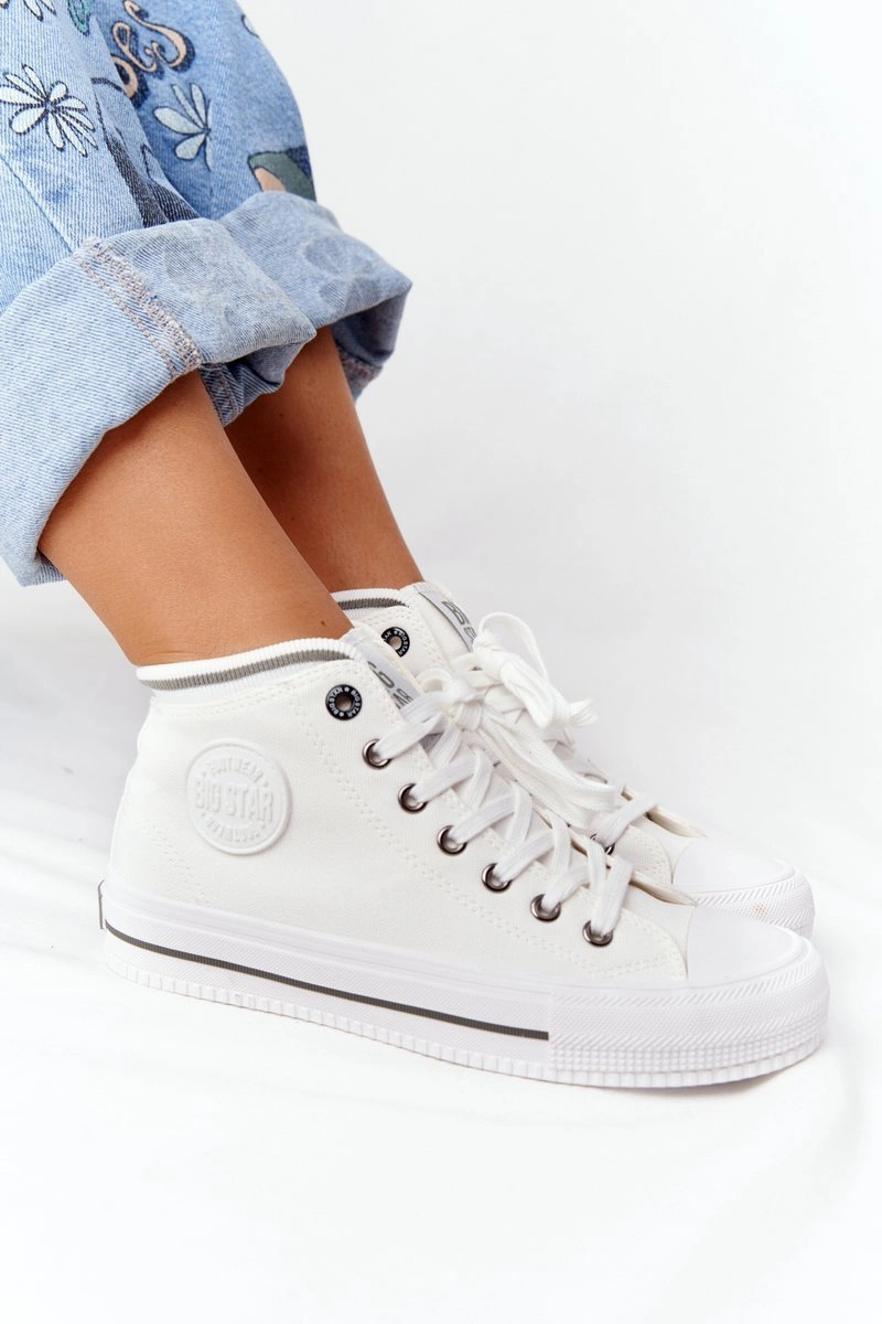 Damskie Wysokie Trampki Big Star HH274149 Białe