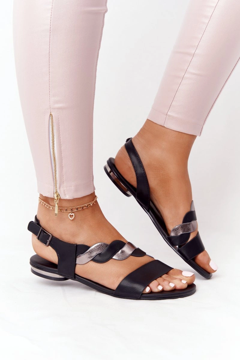 Skórzane Sandały Vinceza 21-17117 Czarno-Srebrne