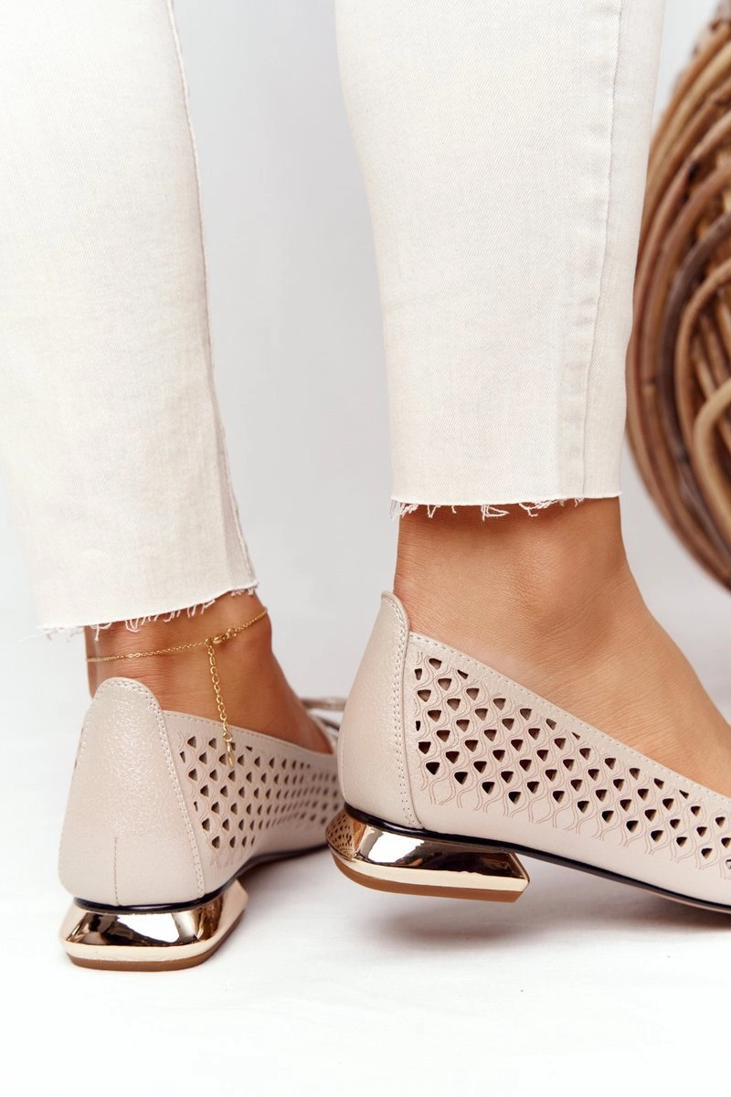 Ażurowe Mokasyny Na Złotym Obcasie Vinceza 21-10602 Złote