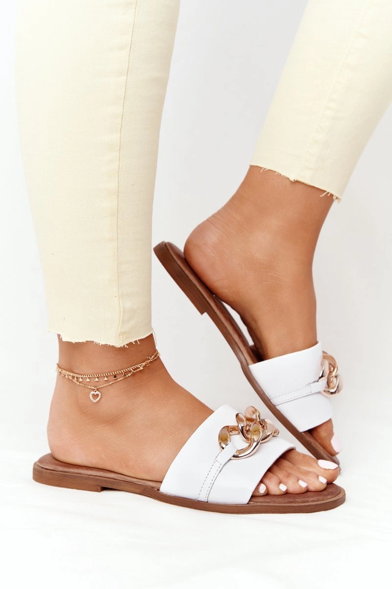 Skórzane Klapki Z Łańcuszkiem Nicole 2652 Białe