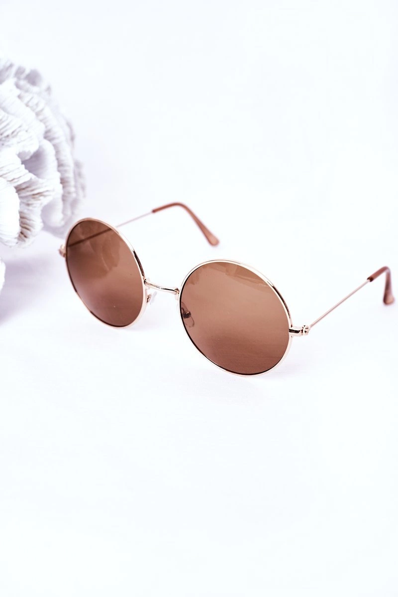 Złote Okulary Lenonki Z Brązowymi Szkłami