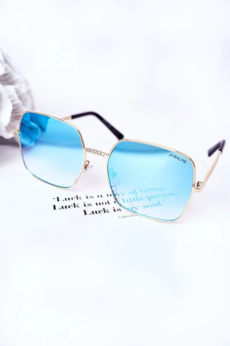 Złote Kwadratowe Okulary Z Niebieskimi Szkłami Ombre