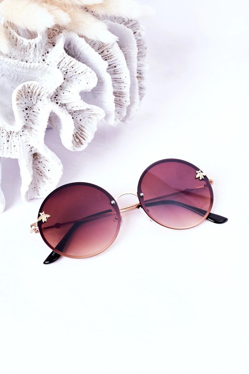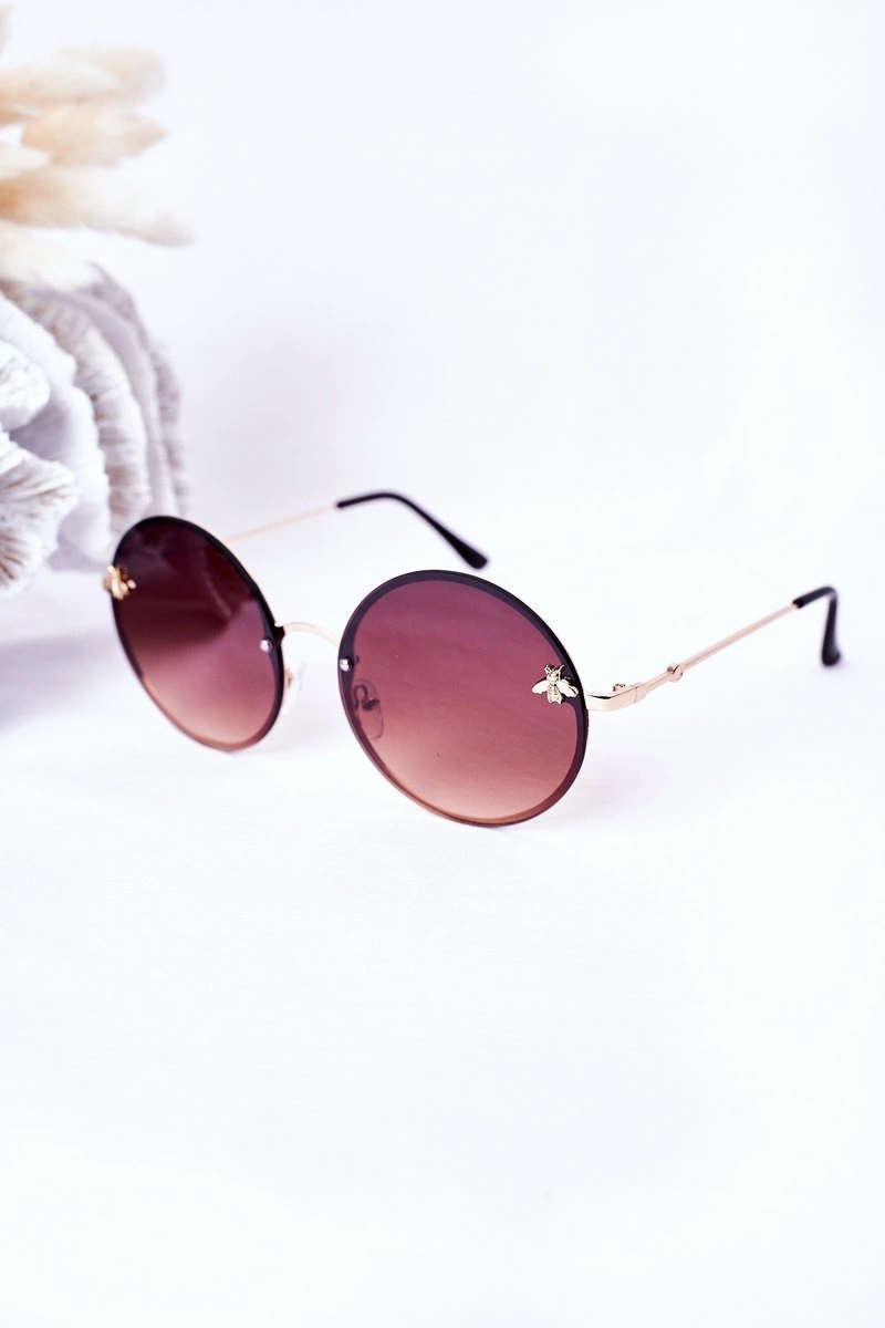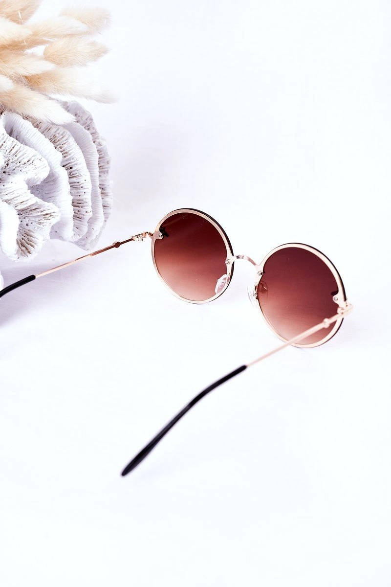Złote Okrągłe Okulary Z Muchą Brązowe Ombre