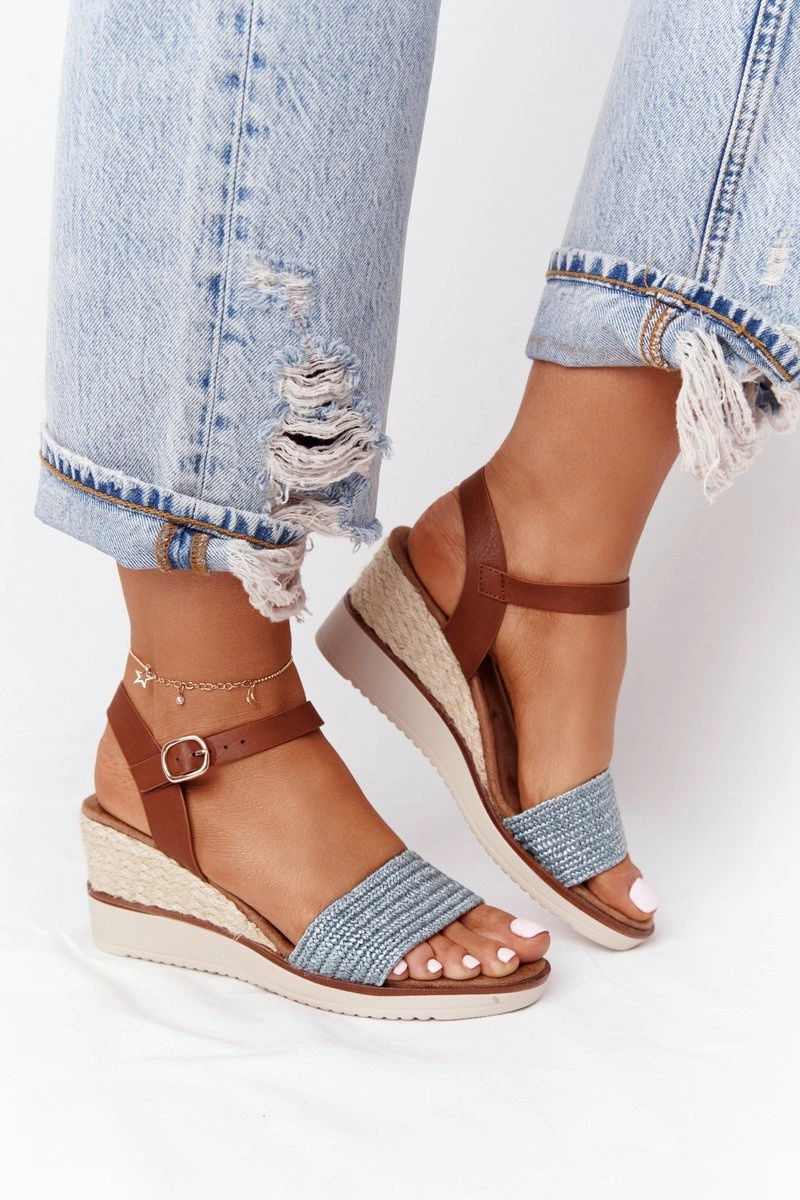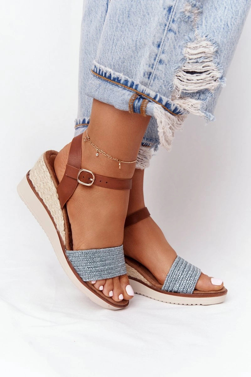 Sandały Na Koturnie Z Plecionką Niebieskie Tenerife