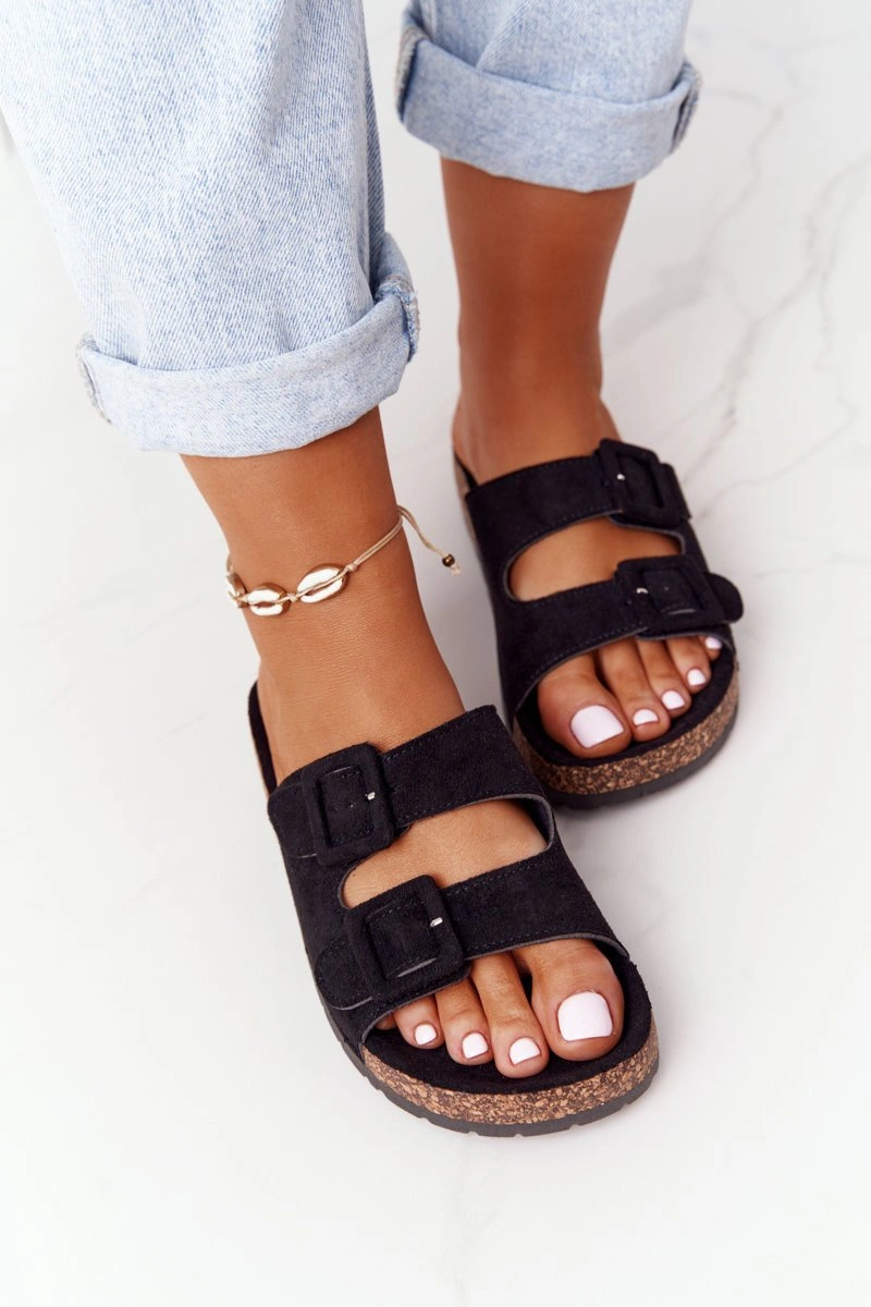 Zamszowe Klapki Na Korkowej Podeszwie Czarne Jennifer