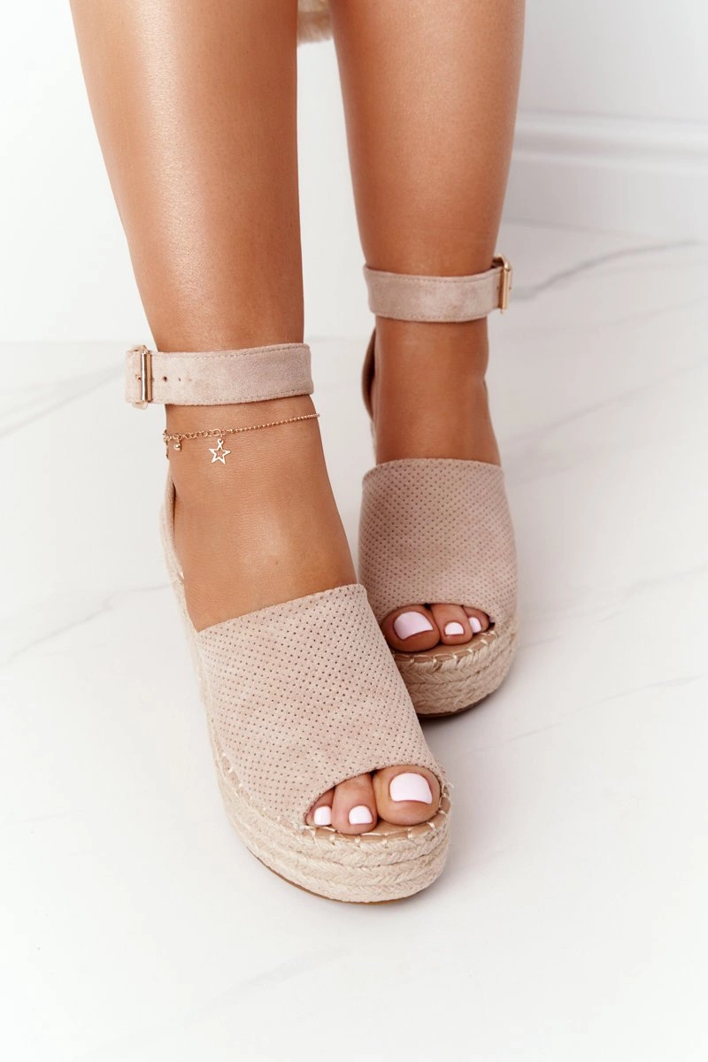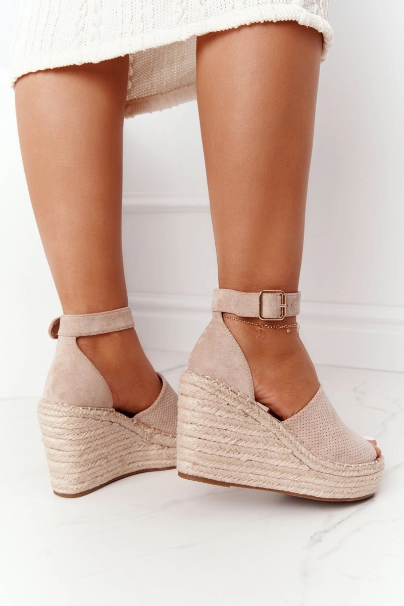 Sandały Na Koturnie Z Plecionką Beżowe Makenna