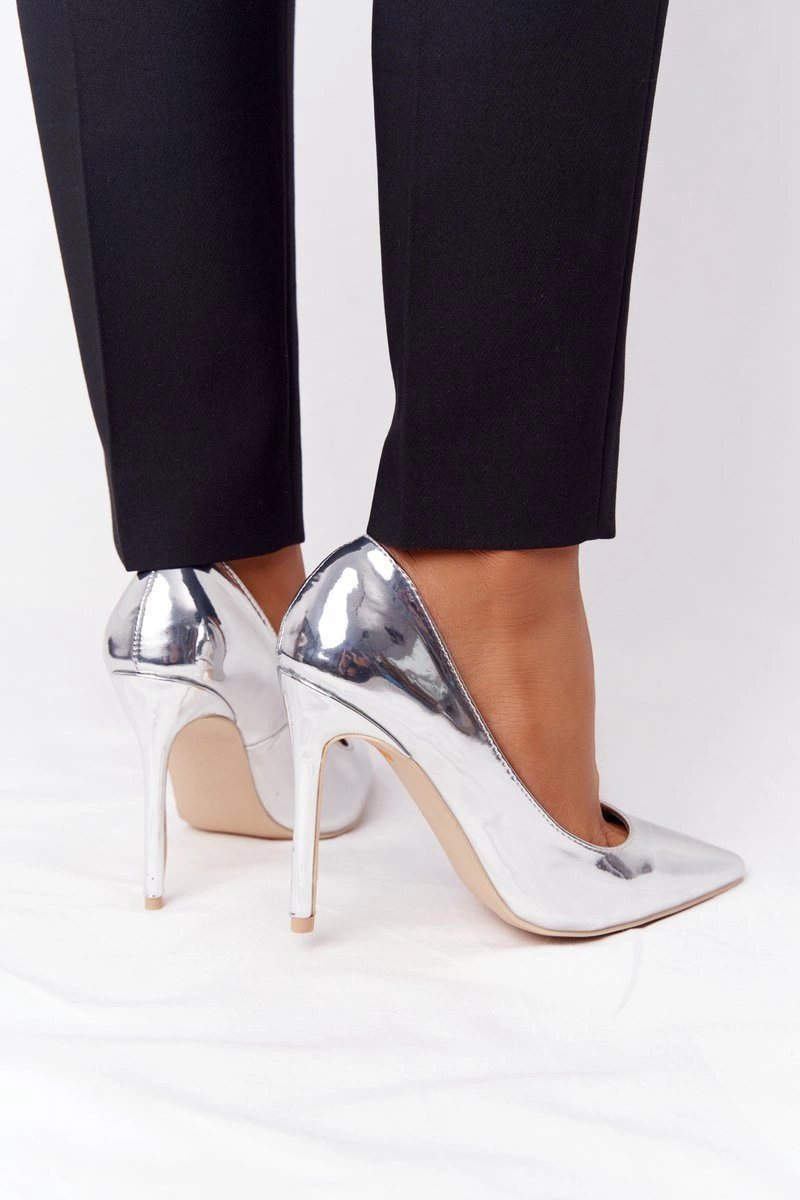 Eleganckie Lakierowane Szpilki Lu Boo Srebrne