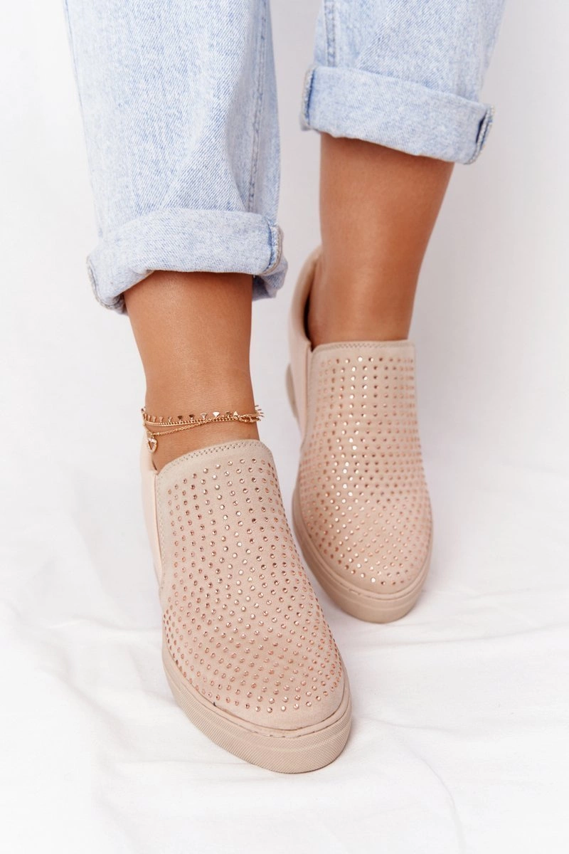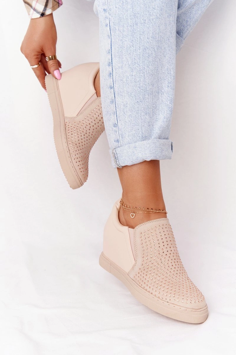 Sneakersy Na Koturnie Z Cekinami Lu Boo Beżowe