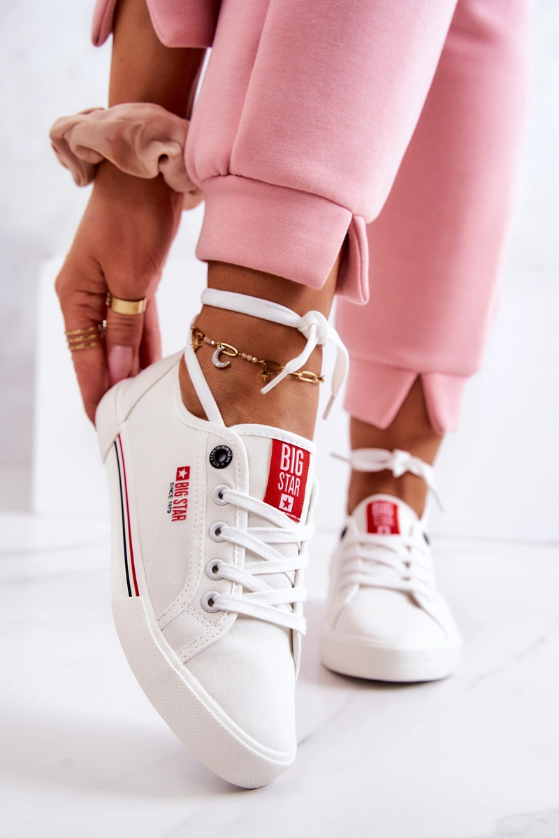Damskie tenisówki polskiej marki BIG STAR. Klasyczne tenisówki pasują do wielu stylizacji. Buty dobrze dopasowują się do kształtu stopy, posiadają miękką, materiałową wkładkę oraz antypoślizgową podeszwę. Koniecznie sprawdź całą naszą kolekcję butów BIG STAR. Przy wyborze rozmiaru prosimy sugerować się tabelą rozmiarów.