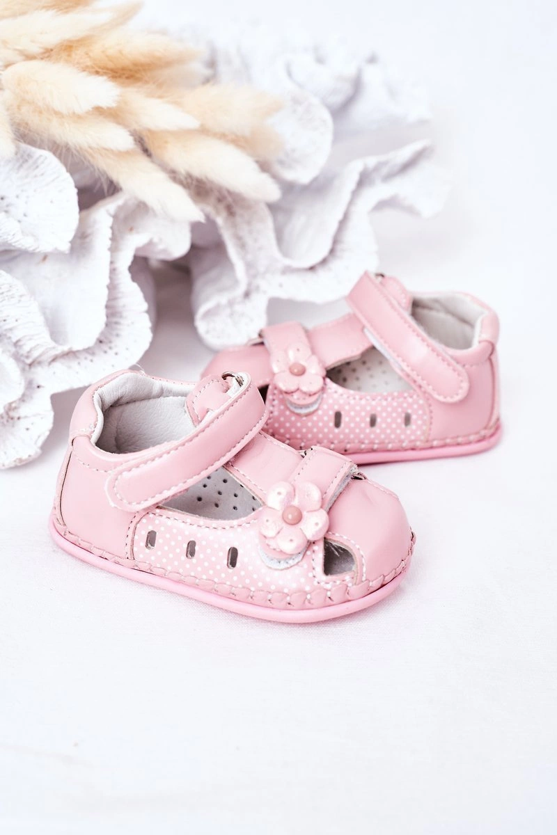 Dziecięce Skórzane Sandałki Na Rzepy Różowe Flowers